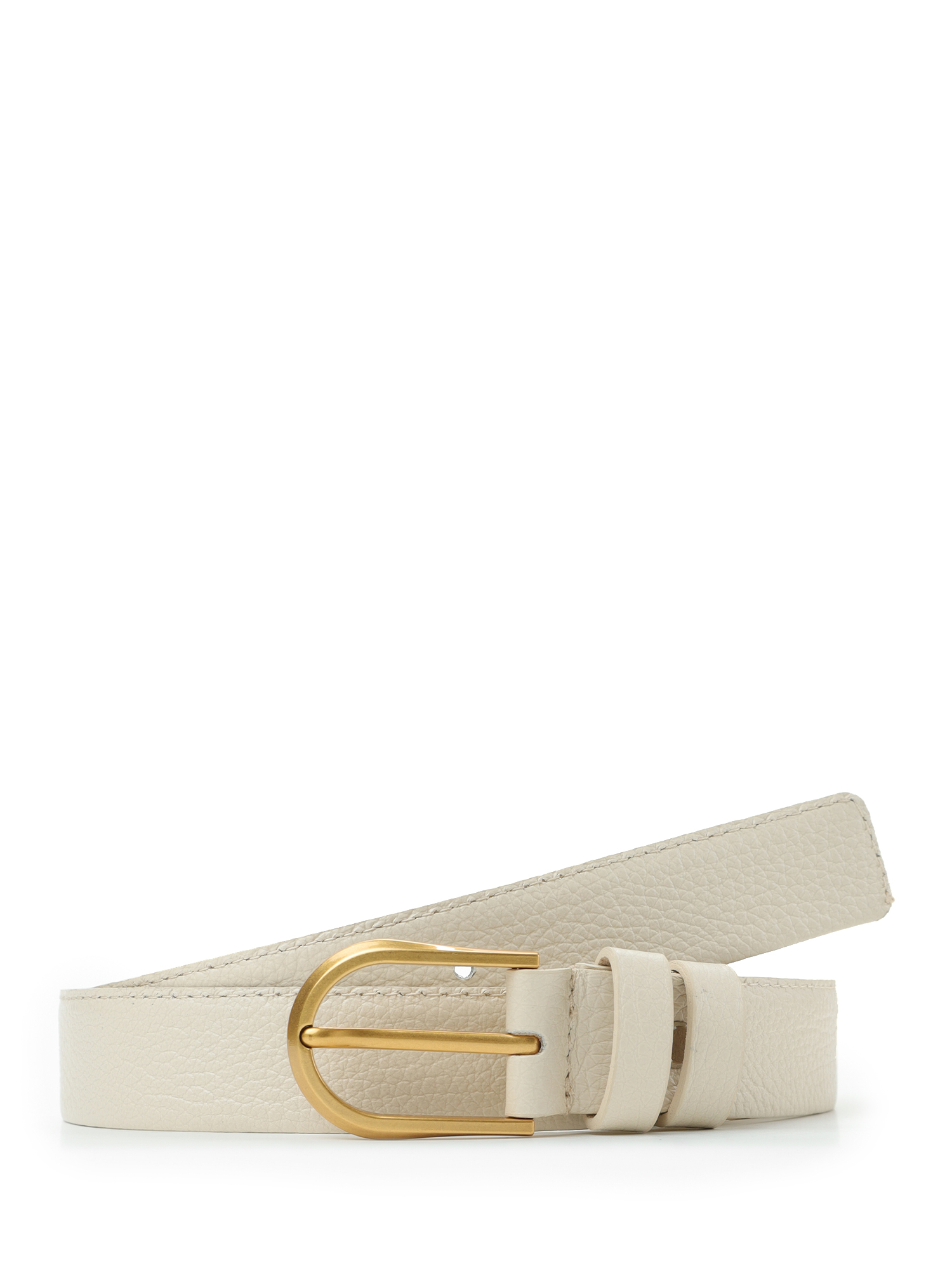 Необычный женский ремень итальянского бренда FABRETTI в молочном цвете выполнен из мягкой зернистой кожи. Особенность модели – двустороннее сложение кожи. Материал прошит с одной стороны. Такая конструкция делает ремень более мягким и гибким.