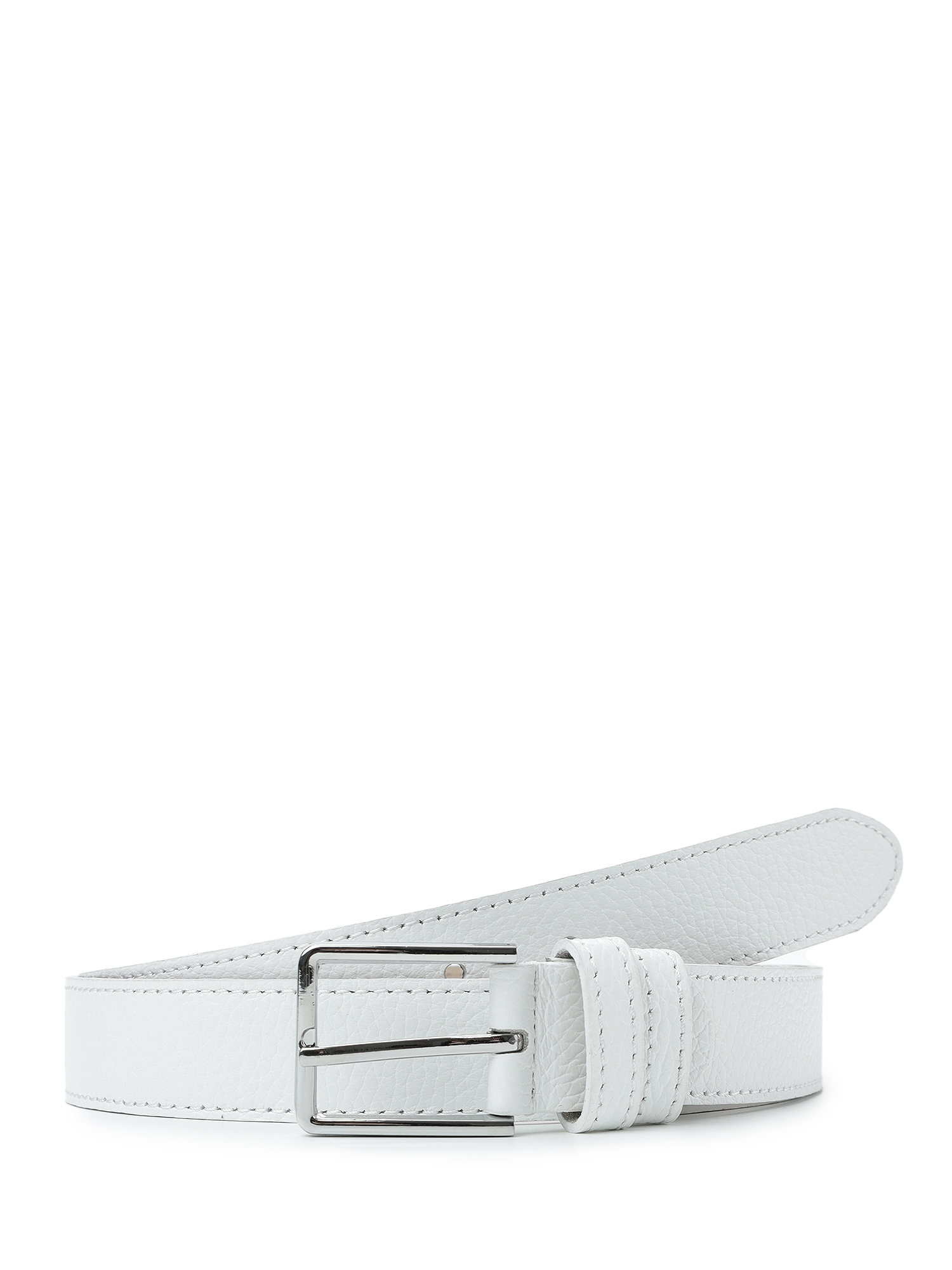 Стильный широкий женский ремень итальянского бренда FABRETTI в белом цвете, выполнен из натуральной кожи с крупнозернистой фактурой. Тыльная сторона - из кожи с бархатистым спилом. Модель дополнена большой прямоугольной пряжкой из прочного гальванического сплава с покрытием золото. Пряжка крепится к изделию с помощью винта, что позволяет легко отрегулировать длину. Ремень отстрочен по краям в тон коже.