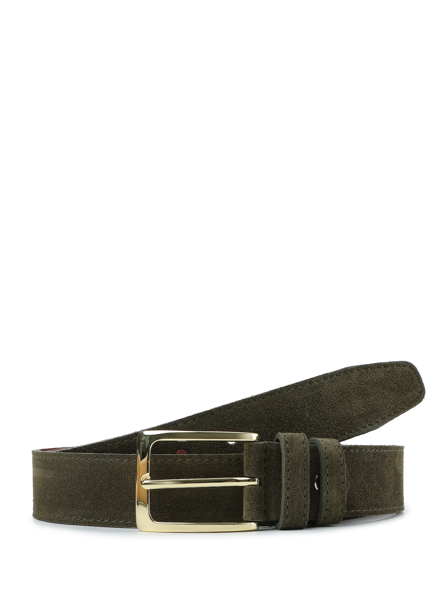 Стильный широкий женский ремень итальянского бренда FABRETTI в природном темно-зеленом оттенке хаки, выполнен из натуральной замши с нежной бархатистой фактурой. Тыльная сторона - из натуральной кожи с замшевым спилом.