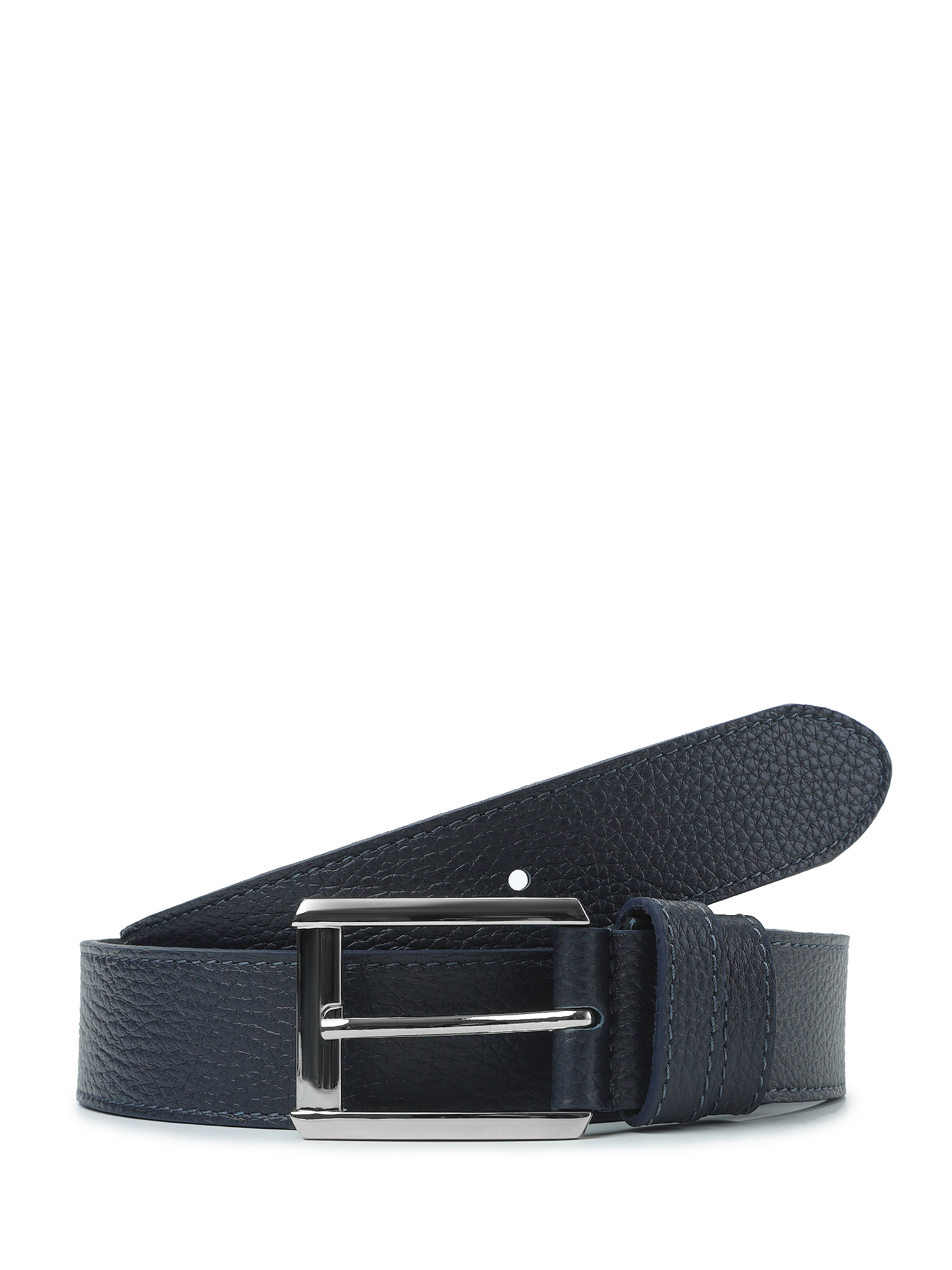 Стильный широкий женский ремень итальянского бренда FABRETTI в темно-синем цвете, выполнен из натуральной кожи с крупнозернистой фактурой. Тыльная сторона - из кожи с гладкой фактурой. Модель дополнена большой прямоугольной пряжкой из прочного гальванического сплава с покрытием серебро. Пряжка крепится к изделию с помощью винта, что позволяет легко отрегулировать длину. Ремень отстрочен по краям в тон коже.
