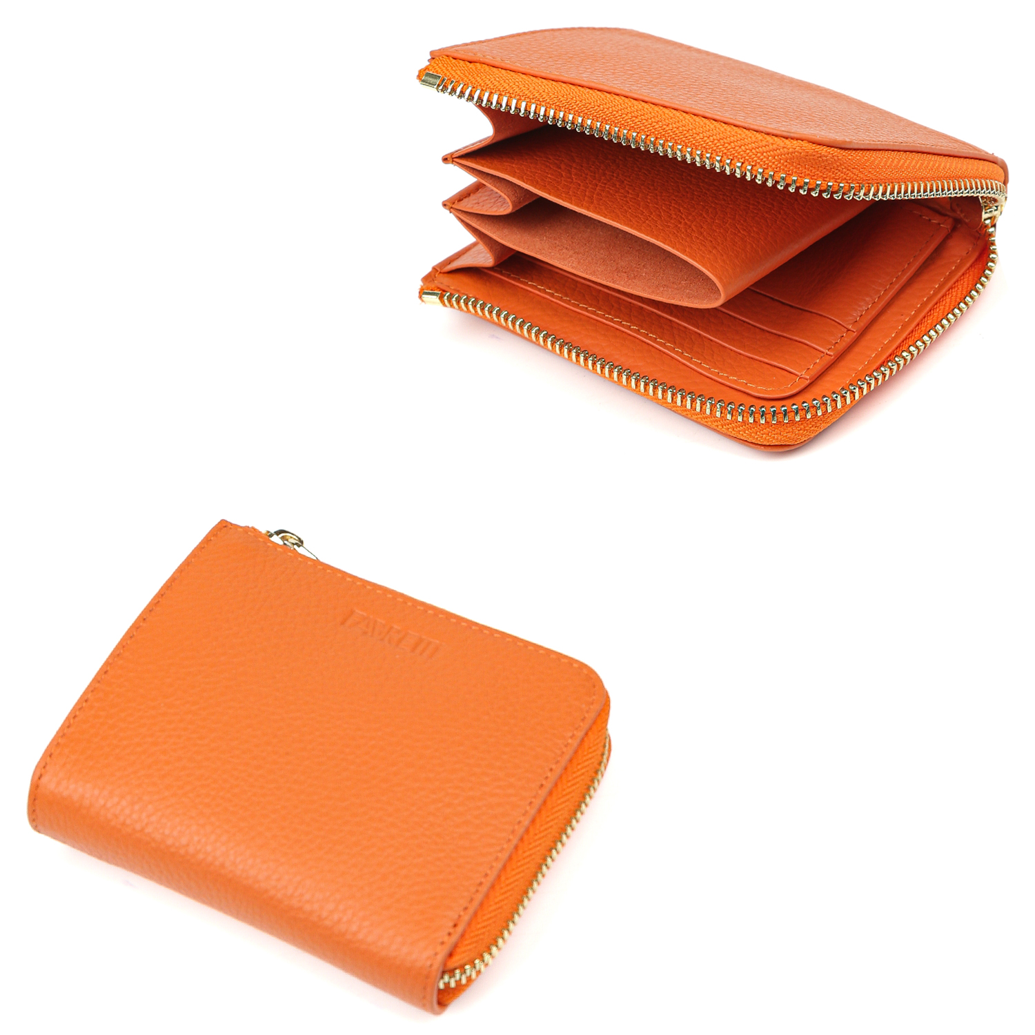 Компактный кошелек FABRETTI сочетает функциональность, качество и стиль. Аксессуар выполнен из натуральной зернистой кожи в оранжевом оттенке и закрывается на полукруглую молнию. Внутри 2 отделение, открытая секция для купюр, 6 слотов для пластиковых карт, 2 открытых кармана. Цвет фурнитуры - золото.