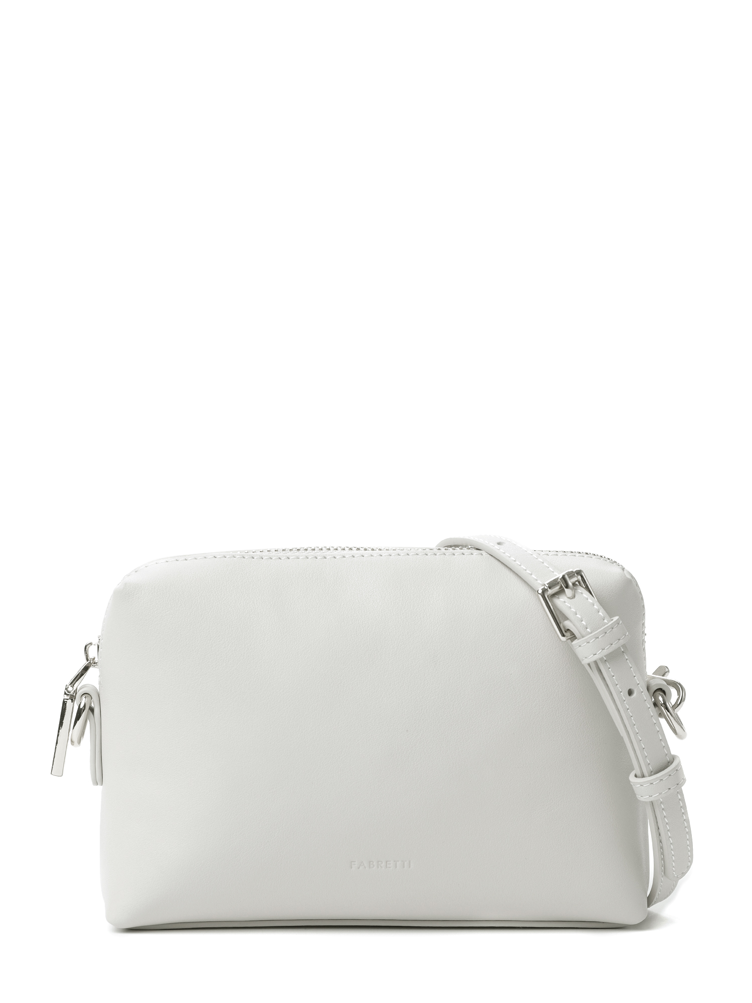 Великолепная миниатюрная женская сумка кросс-боди итальянского бренда FABRETTI из матовой кожи наппа светло-серого цвета. Единственное отделение застегивается на металлическую молнию. Внутри отделения небольшой карман на молнии. Сумка дополнена текстильной подкладкой в стиле логомании. Тонкий съемный ремешок регулируется по размеру пряжкой, длина ок. 115 см, 7 отверстий; крепится при помощи карабинов. На лицевой стороне лаконичное тиснение с логотипом. Цвет фурнитуры – серебро.