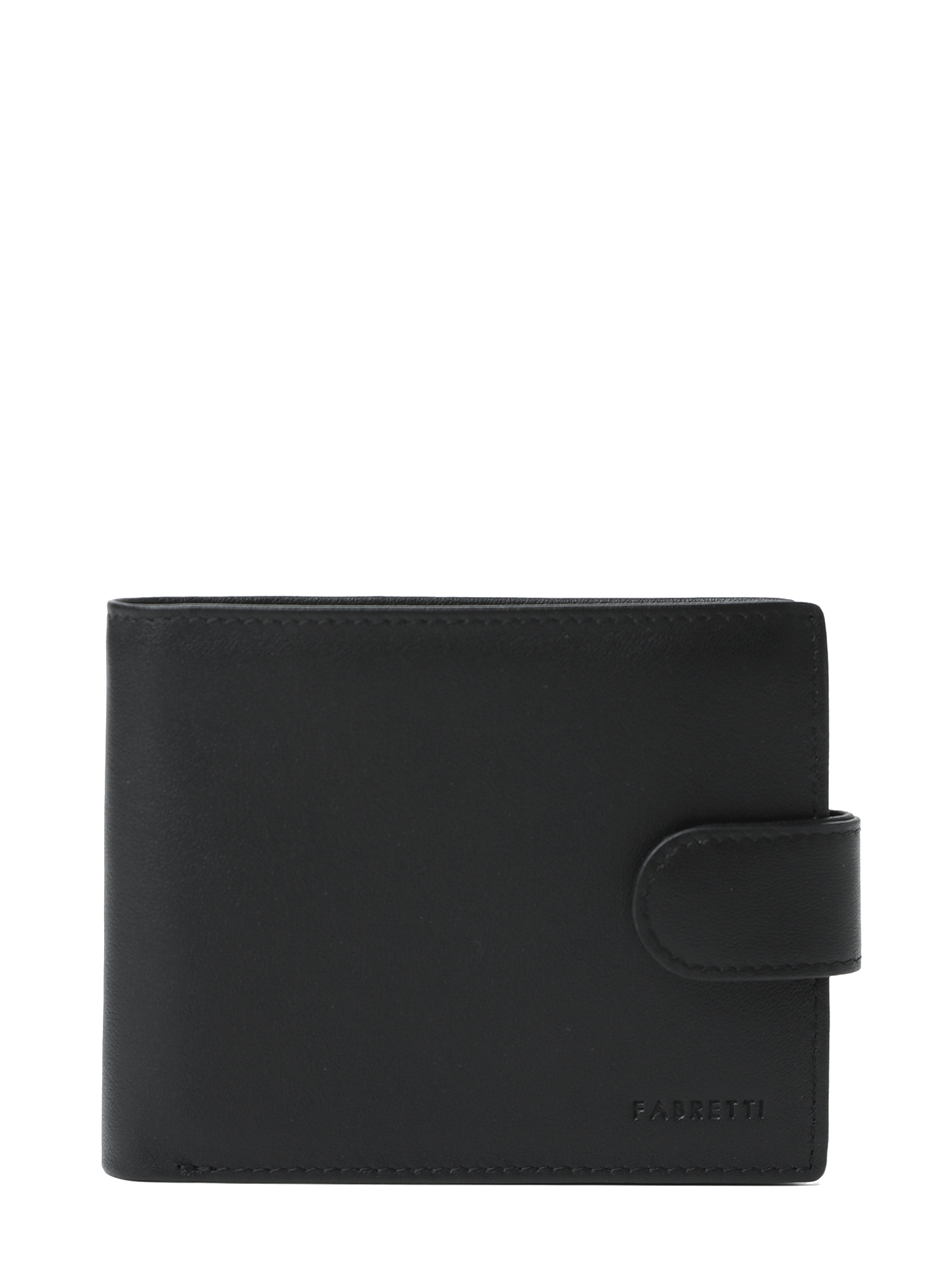 Складной мужской кошелек итальянского бренда FABRETTI выполнен из натуральной гладкой кожи в черном оттенке.