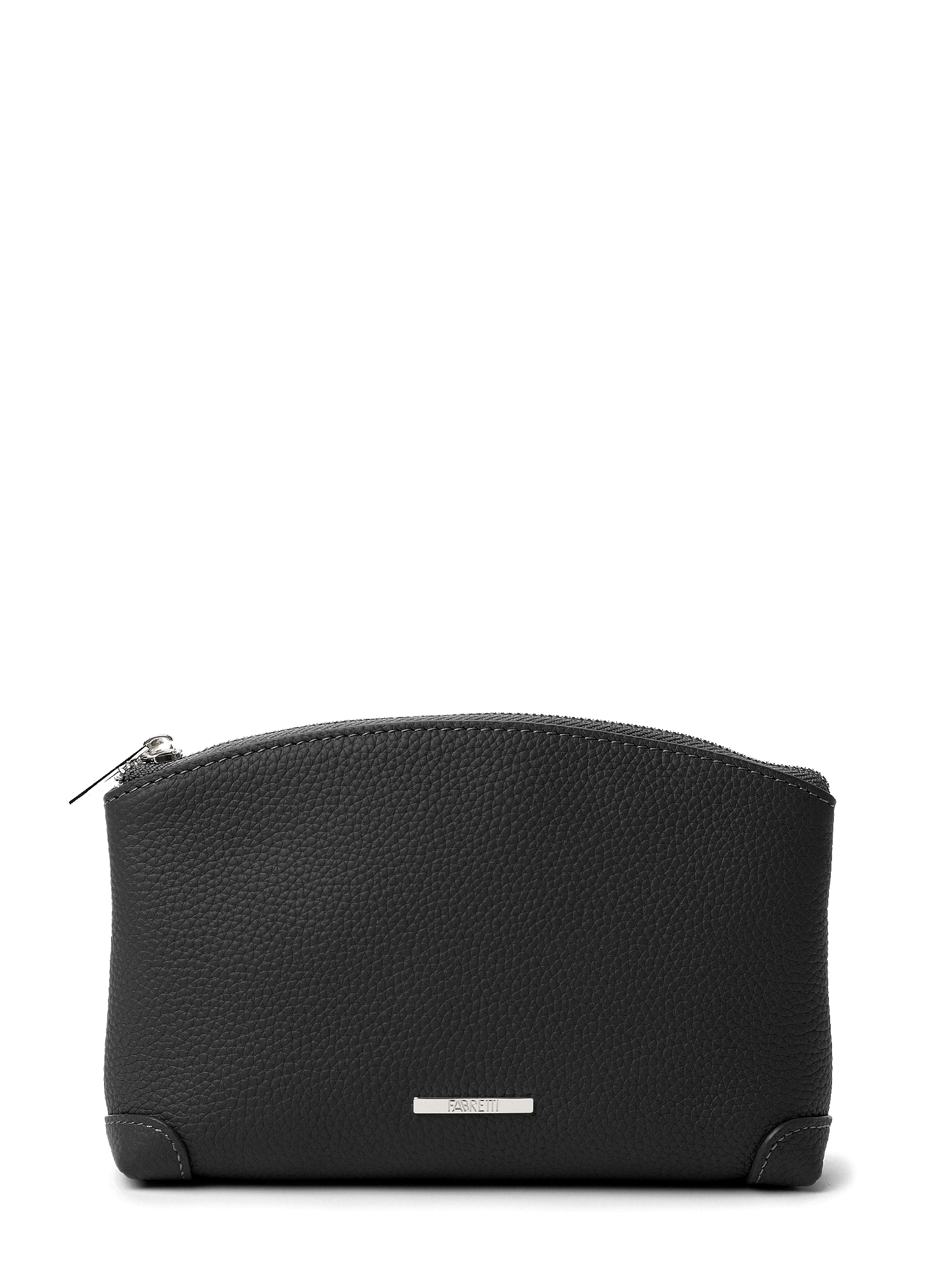 Женская косметичка итальянского бренда FABRETTI из натуральной кожи с крупнозернистой фактурой в черном цвете.