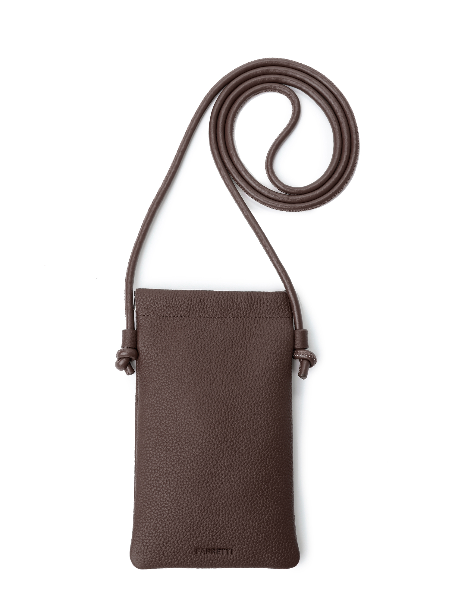 Необычная вертикальная женская сумка для телефона итальянского бренда FABRETTI выполнена из мягкой натуральной кожи в теплом шоколадном оттенке с крупнозернистой фактурой. Основное отделение закрывается на гибкий замок-рамку.
