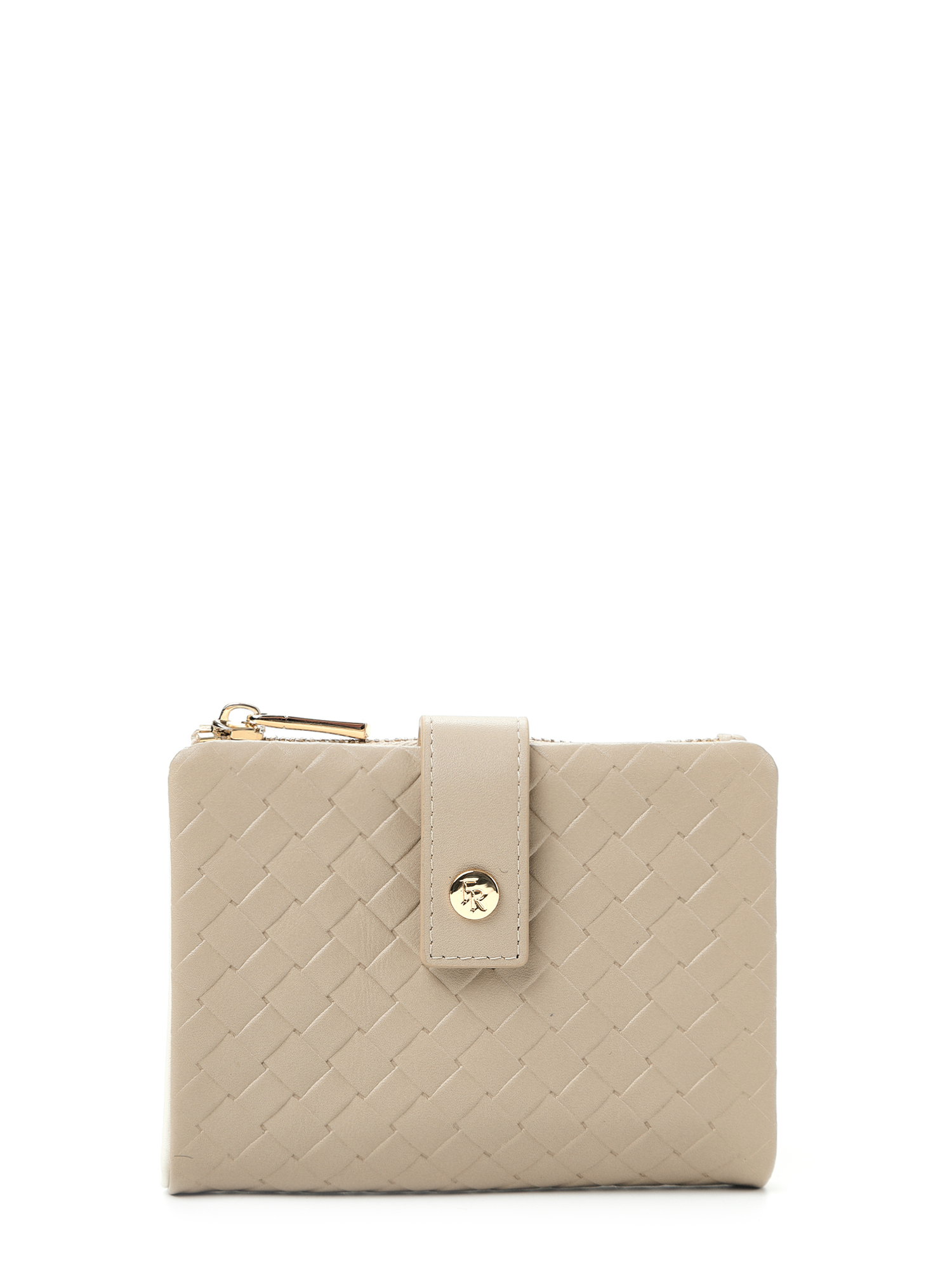 Складной женский кошелек итальянского бренда FABRETTI из нежной кожи наппа в бежевом оттенке. Поверхность украшена оригинальным глубоким тиснением, имитирующим плетеный узор.
