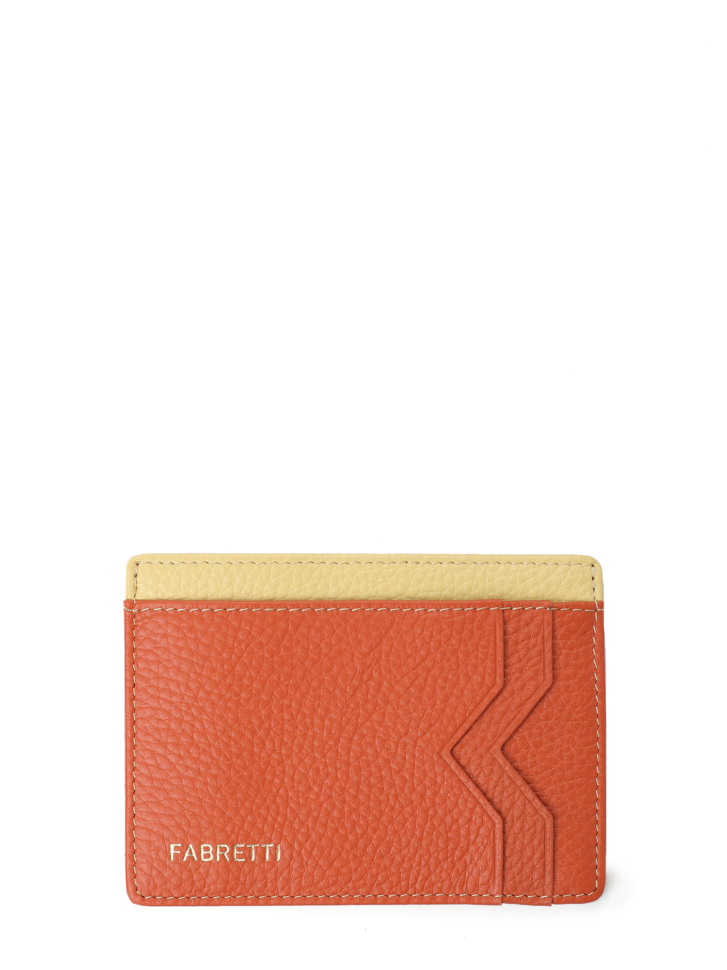 Небольшой лаконичный женский картхолдер итальянского бренда FABRETTI – практичный и компактный аксессуар в оригинальном ярком дизайне. Он выполнен из натуральной кожи с крупнозернистой фактурой, верх теплого тыквенно-оранжевого оттенка, отделка внутреннего отделения из светло-лимонной кожи. Внутри картхолдер дополнен подкладкой с узором в стиле «логомании».