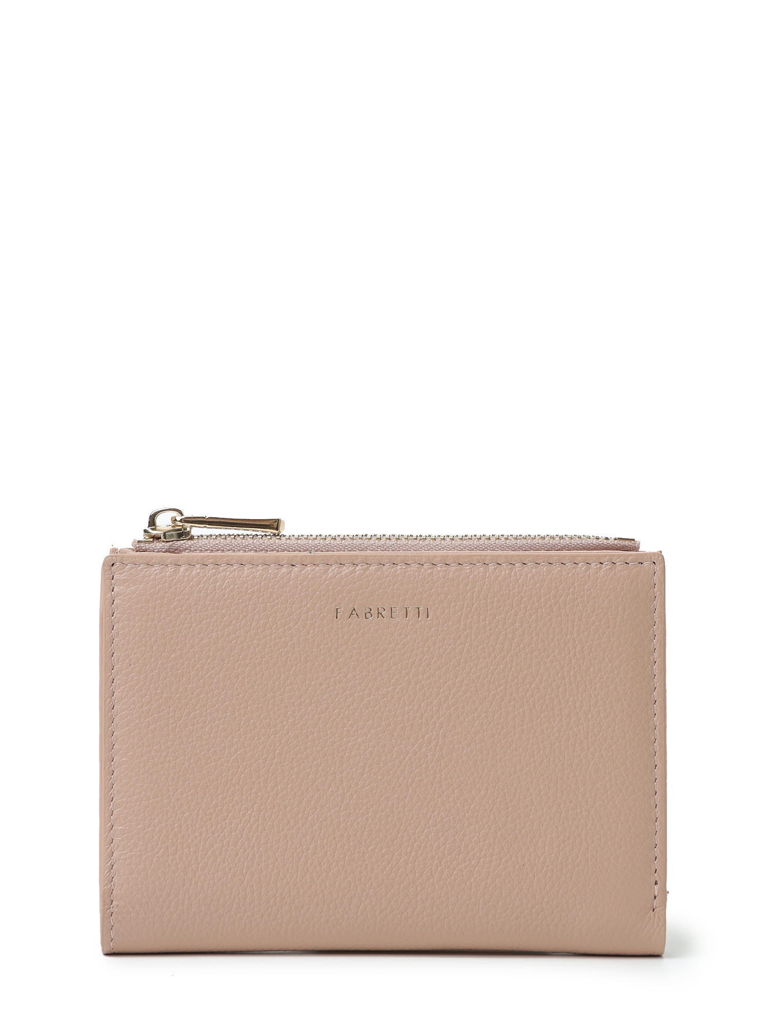 Компактный складной кошелек итальянского бренда FABRETTI в теплом пудровом розовом оттенке выполнен из натуральной мелкозернистой кожи яка.