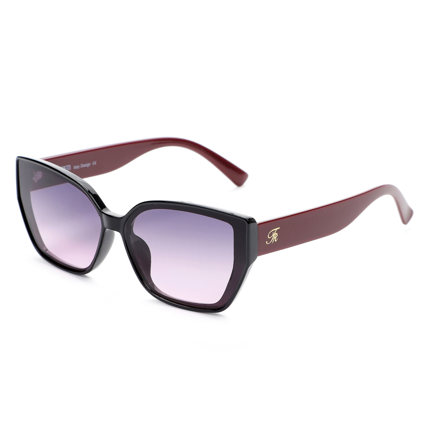 Классические солнцезащитные очки итальянского бренда FABRETTI в узкой черной оправе формы "кошачий глаз" с темно-красными дужками. Градиентные серо-бордовые линзы позволяют видеть одинаково хорошо как в помещении, так и на солнечной улице. Слегка вытянутые внешние углы оправы визуально приподнимают скулы и создают иллюзию более выразительных глаз. Оправа подходит для круглых и квадратных форм лица.