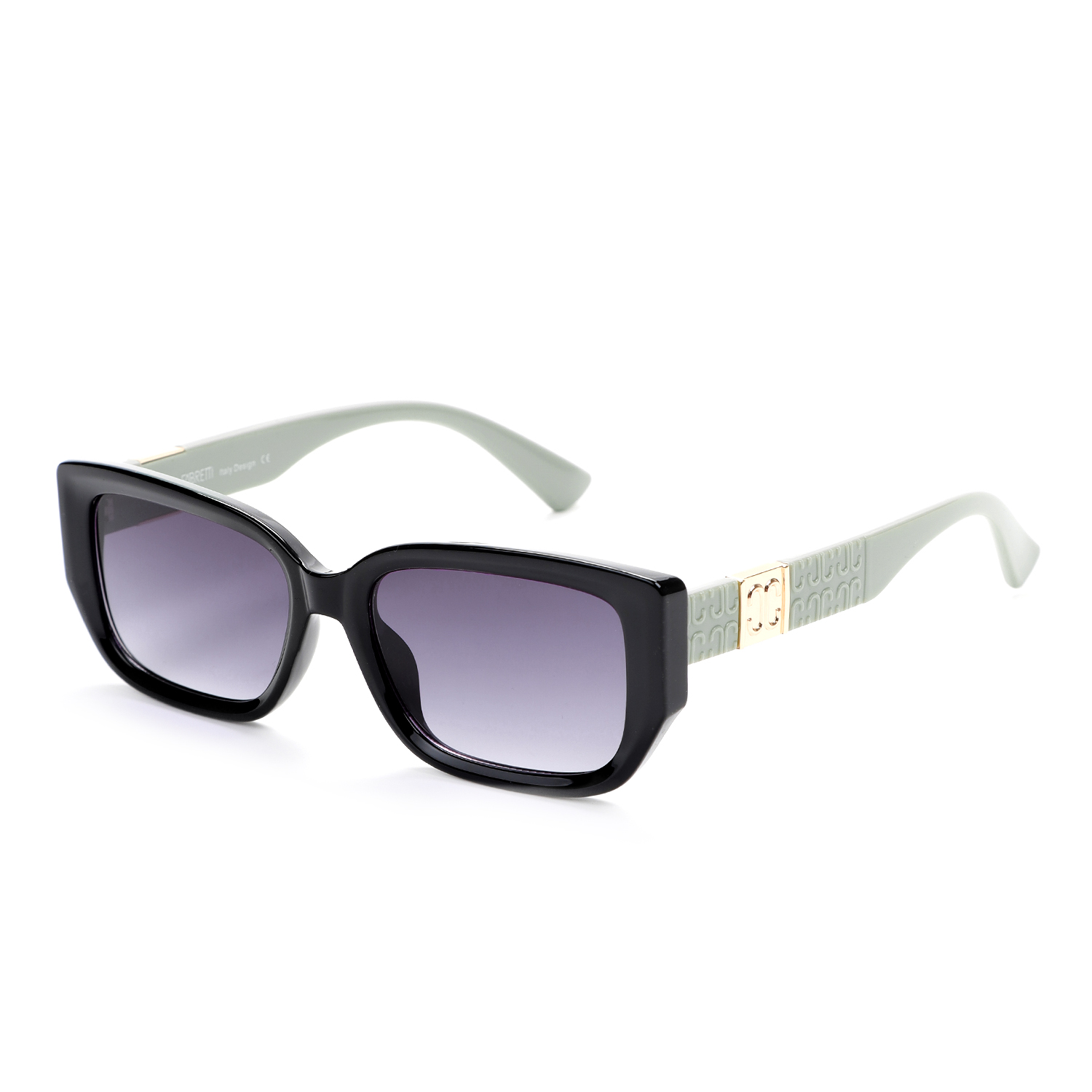 Солнцезащитные очки итальянского бренда FABRETTI в черной оправе формы "кошачий глаз" с зелеными дужками. Градиентные серо-желтые линзы позволяют видеть одинаково хорошо как в помещении, так и на солнечной улице. У модели классическая форма со слегка вытянутыми уголками, визуально приподнимающими скулы и создающими иллюзию более выразительных глаз. Оправа подходит для круглых и квадратных форм лица.