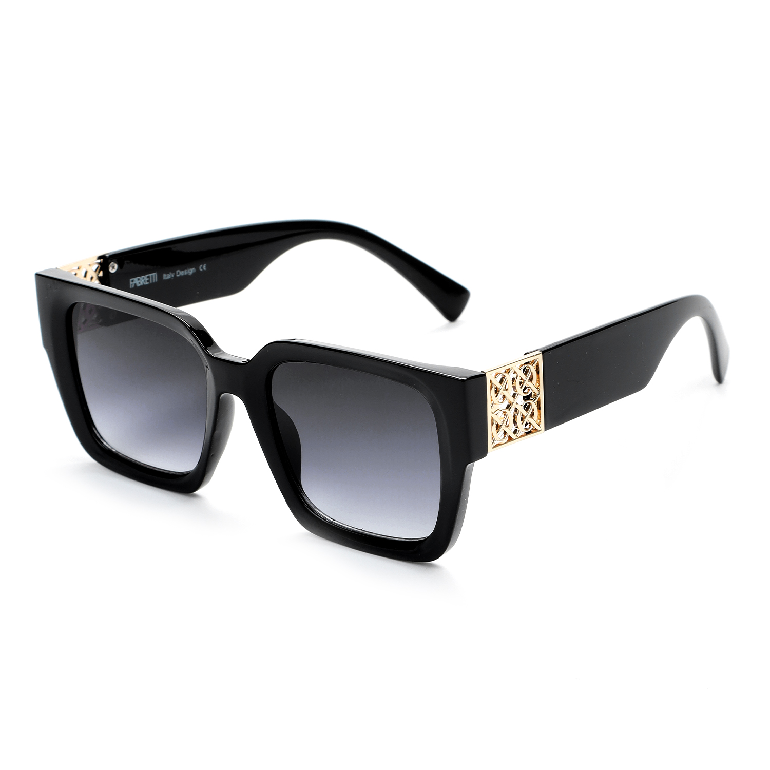 Современные солнцезащитные очки итальянского бренда FABRETTI в черной оправе трапециевидной формы. Градиентные серые линзы позволяют видеть одинаково хорошо как в помещении, так и на солнечной улице. Геометрическая оправа wayfarer («вайфарер») — ретро-форма, которая не теряет актуальности более полувека и сочетается с большинством типов лиц. Трапециевидная форма одинаково хорошо смотрится и в деловом, и в повседневном гардеробе. Дужки украшены ажурными вставками.