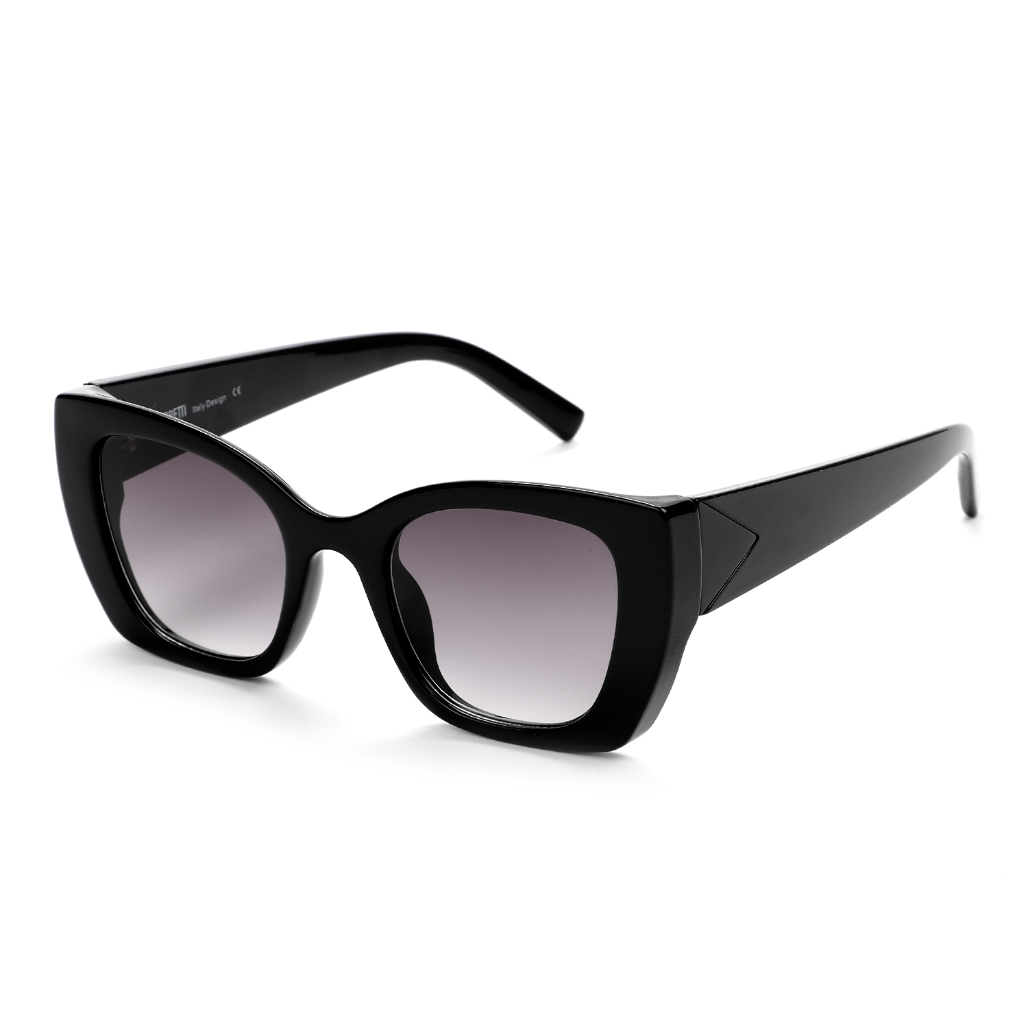 Стильные солнцезащитные очки итальянского бренда FABRETTI в глянцево-черной оправе формы "кошачий глаз". Градиентные линзы в серо-сиреневом оттенке позволяют видеть одинаково хорошо как в помещении, так и на солнечной улице. Слегка вытянутые к верхним углам линии оправы визуально приподнимают скулы, создавая эффект лифтинга. Эта лаконичная ретро-модель идеально подходит для круглых и квадратных форм лица.