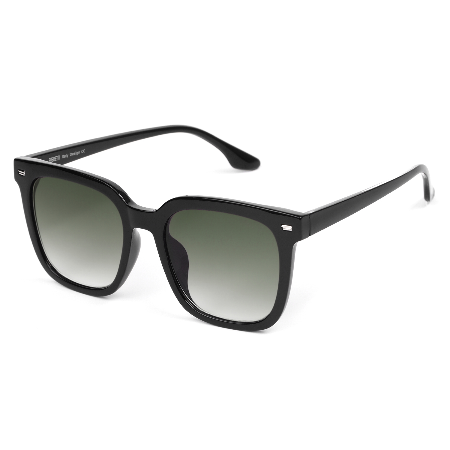 Стильные женские солнцезащитные очки-трапеции итальянского бренда FABRETTI в черной оправе. Градиентные серо-зеленые линзы позволяют видеть одинаково хорошо как в помещении, так и на солнечной улице.