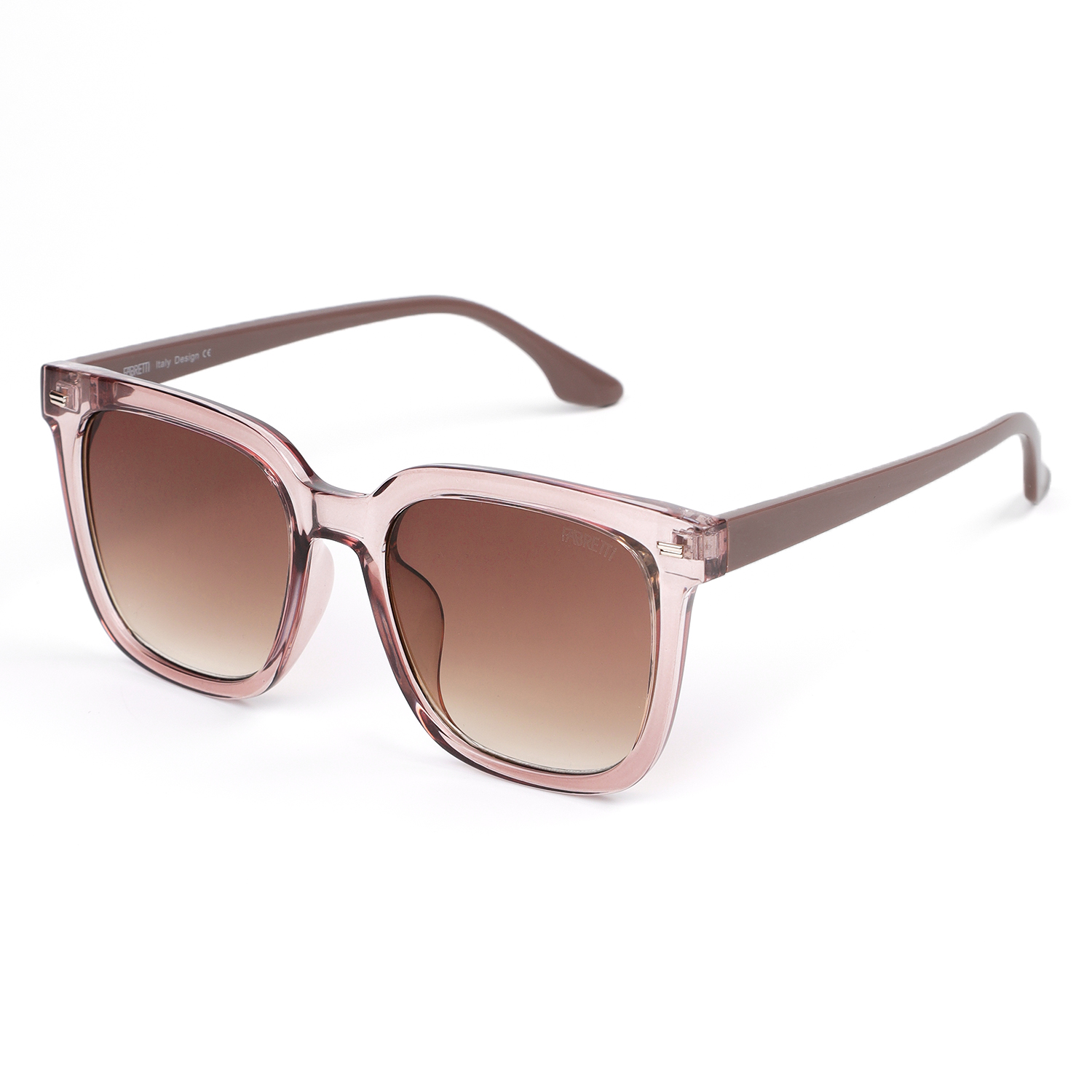 Милые женские солнцезащитные очки-трапеции итальянского бренда FABRETTI в прозрачной бежево-розовой оправе. Градиентные бежевые линзы позволяют видеть одинаково хорошо как в помещении, так и на солнечной улице.