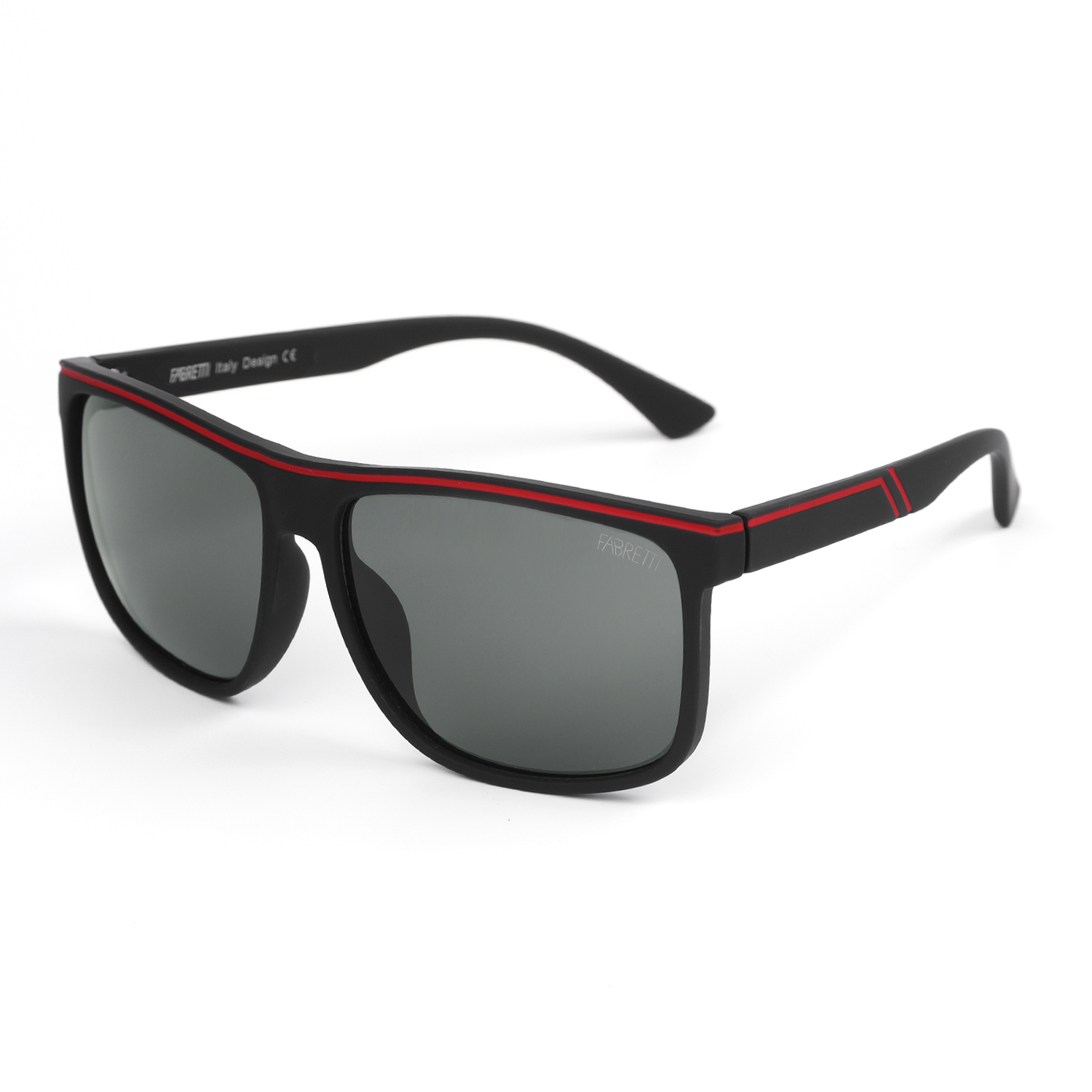 Поляризационные солнцезащитные очки итальянского бренда FABRETTI в матовой синей оправе с красной отделкой верха и дужек. Однотонные линзы в сером оттенке позволяют видеть одинаково хорошо как в помещении, так и на солнечной улице.