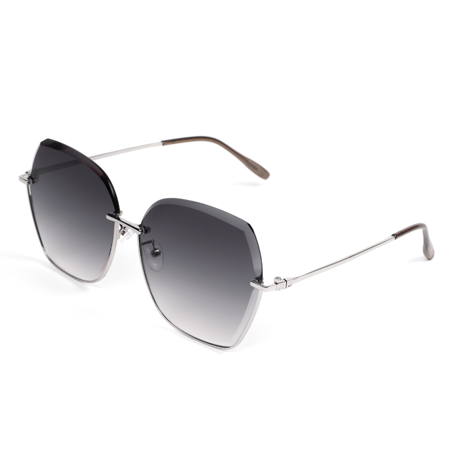 Солнцезащитные очки итальянского бренда FABRETTI необычной шестигранной формы с полуободковой серебристой оправой. Градиентные серые линзы позволяют видеть одинаково хорошо как в помещении, так и на солнечной улице.