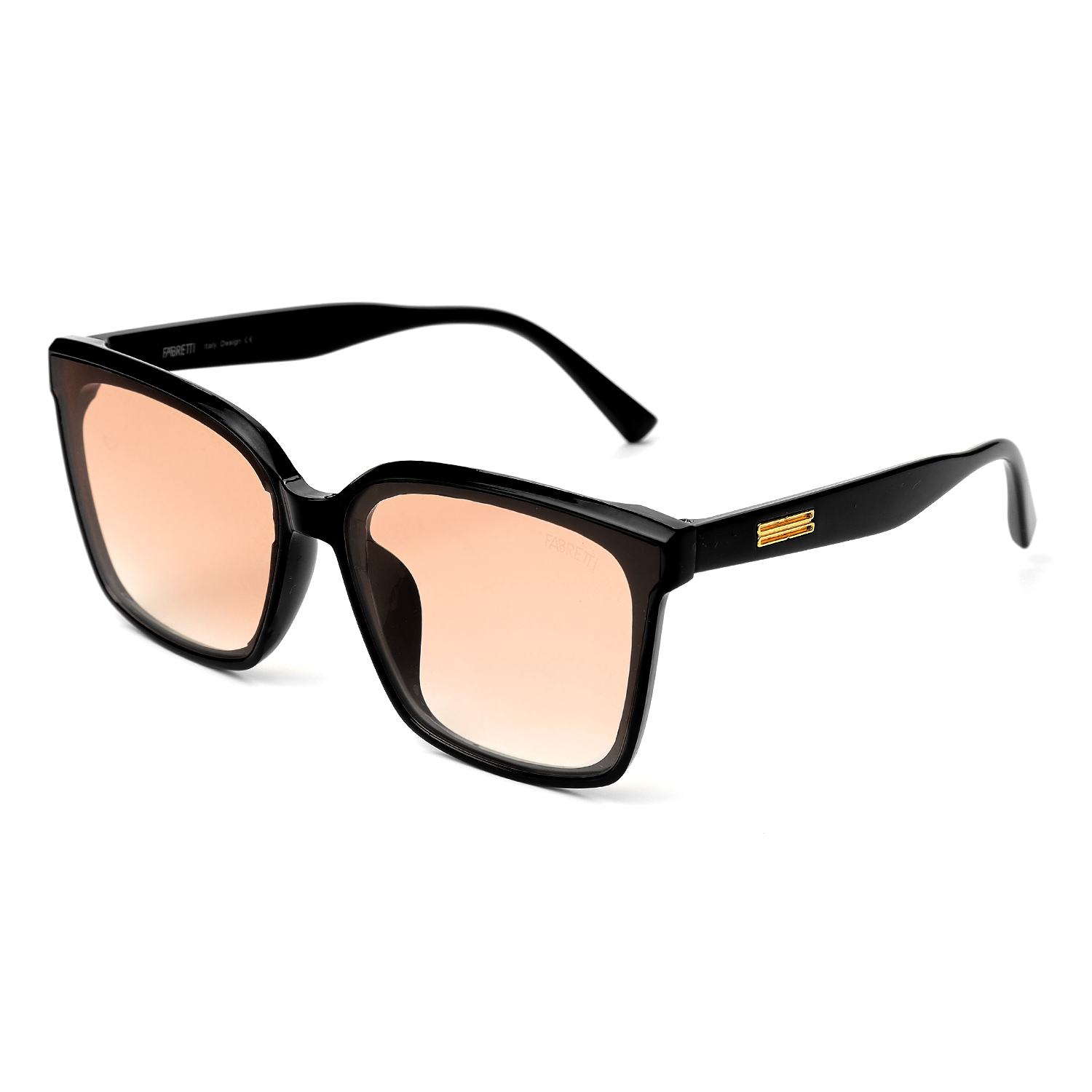 Женские солнцезащитные очки итальянского бренда FABRETTI с черной оправой в форме "кошачий глаз". Градиентные линзы необычного кораллового оттенка позволяют видеть одинаково хорошо как в помещении, так и на улице.