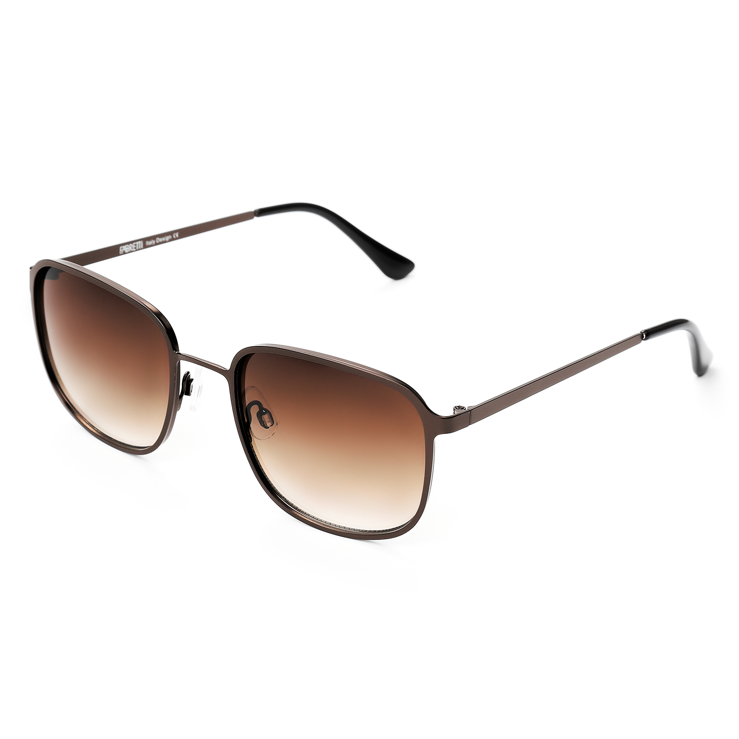 Мужские солнцезащитные очки итальянского бренда FABRETTI в узкой металлической оправе квадратной формы. Градиентные желто-коричневые линзы позволяют видеть одинаково хорошо как в помещении, так и на солнечной улице. С цветом линз хорошо гармонирует шоколадно-коричневая оправа.