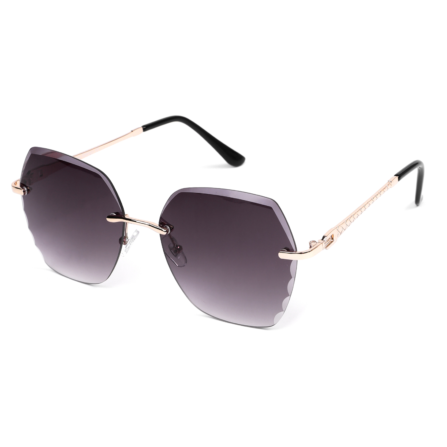 Солнцезащитные очки итальянского бренда FABRETTI необычной шестигранной формы без оправы. Градиентные серые линзы позволяют видеть одинаково хорошо как в помещении, так и на солнечной улице.