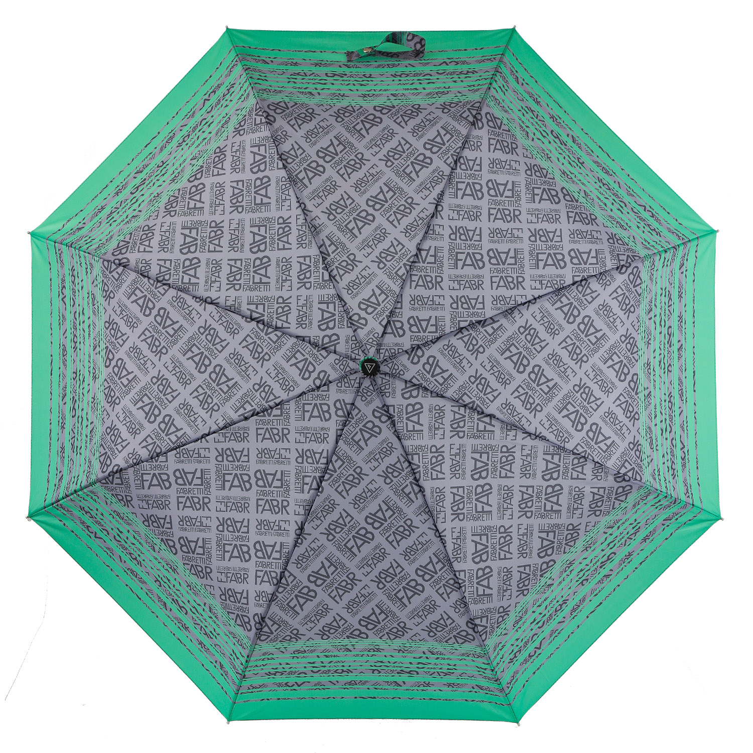 Купол зонта-автомата FABRETTI в сером оттенке украшен оригинальным принтом в стиле «логомания» и по краям декорирован зеленым кантом. Рисунок нанесен с помощью техники цифровой печати, которая обеспечивает долговечность изображению и точность цветопередачи. Купол выполнен из полиэстера с плетением нити – эпонж. Такое плетение помимо матовой фактуры придает ткани высокую прочность и устойчивость к выцветанию.