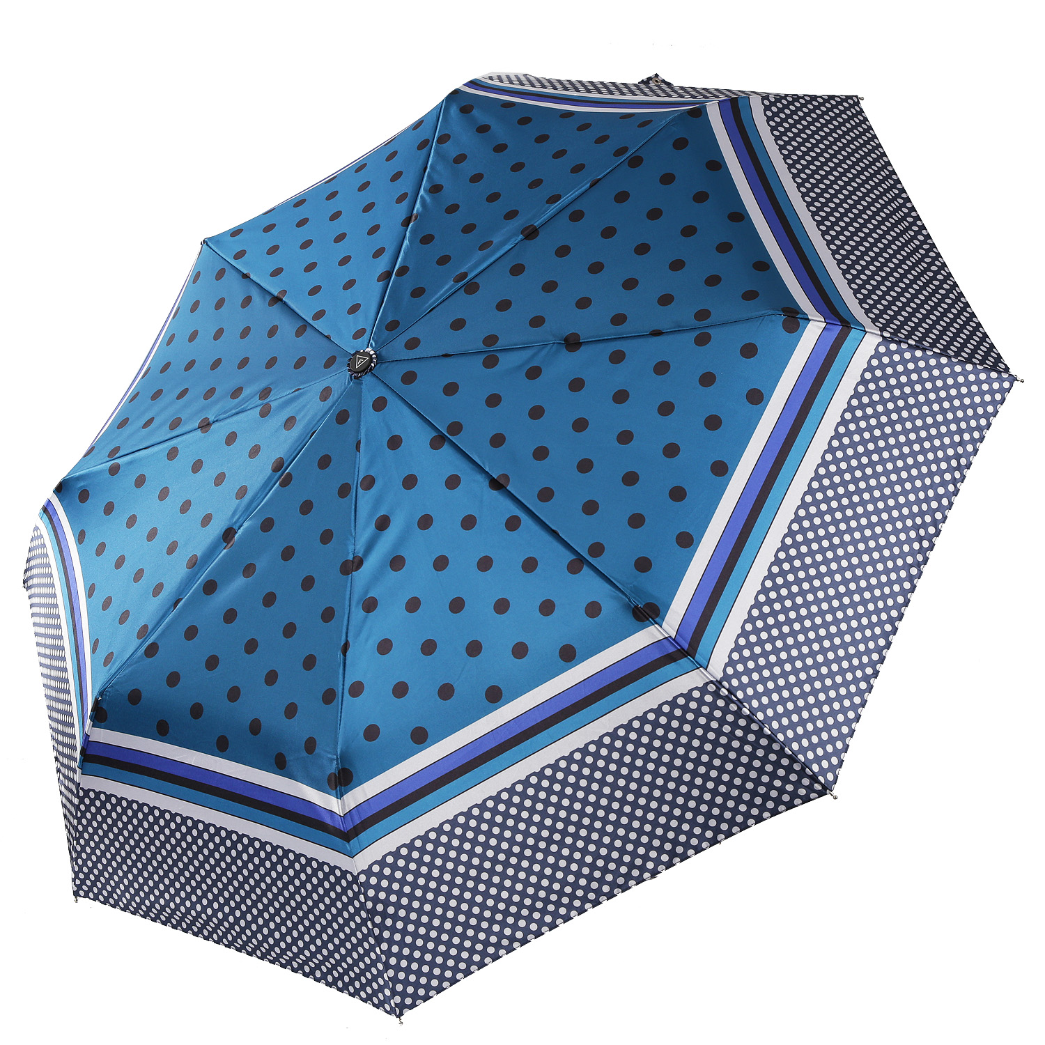 Купол зонта-автомата FABRETTI в бирюзовом оттенке украшен принтом в виде гороха, чередующимся с разноцветными полосками. Рисунок нанесен с помощью техники цифровой печати, которая обеспечивает долговечность изображению и точность цветопередачи. Купол выполнен из полиэстера с приятной гладкой фактурой и сатиновым блеском. Вода, попадая на такой купол, превращается в капли и легко скатываться вниз.