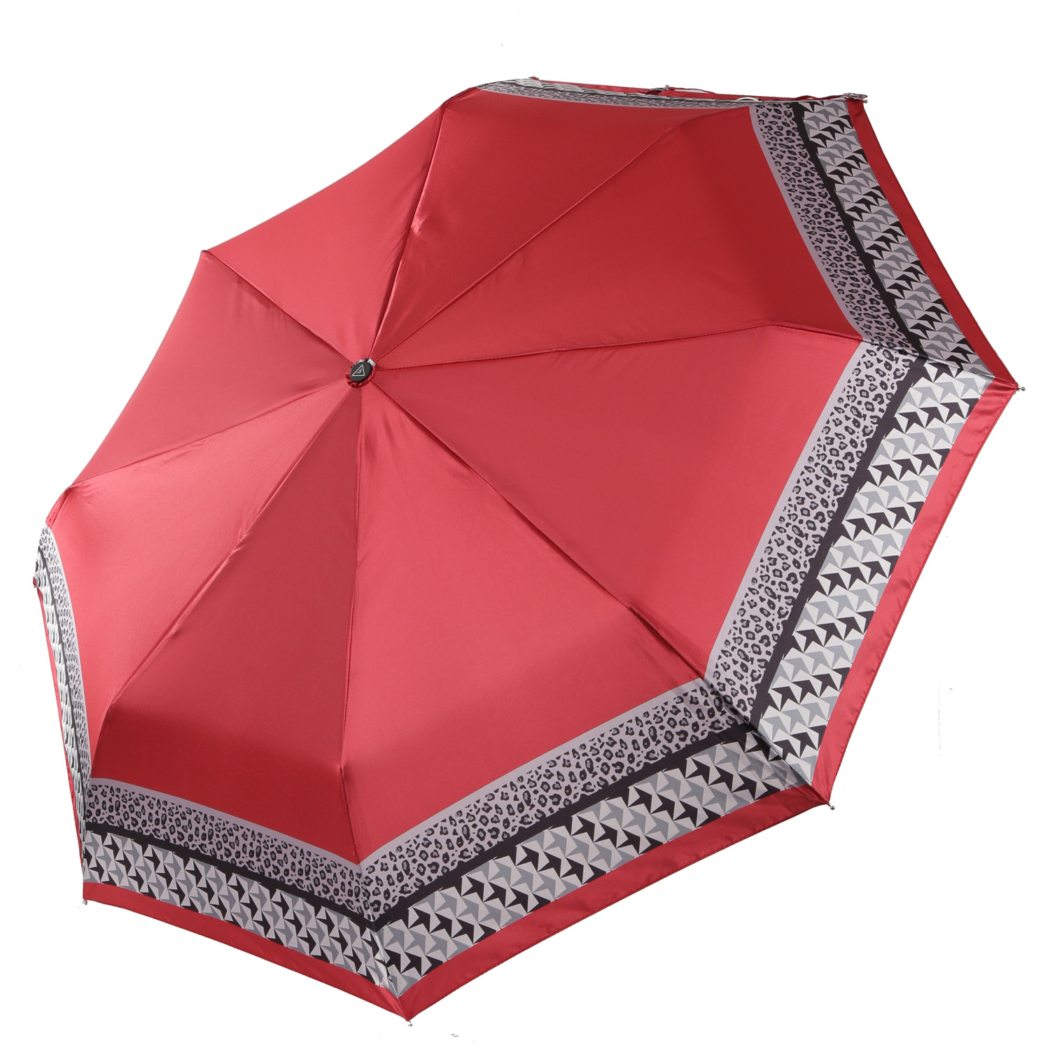 Купол зонта-автомата FABRETTI в красном оттенке украшен кантом, в котором сочетаются анималистический и геометрический принты. Рисунок нанесен с помощью техники цифровой печати, которая обеспечивает долговечность изображению и точность цветопередачи. Купол выполнен из полиэстера с приятной гладкой фактурой и сатиновым блеском. Вода, попадая на такой купол, превращается в капли и легко скатываться вниз.
