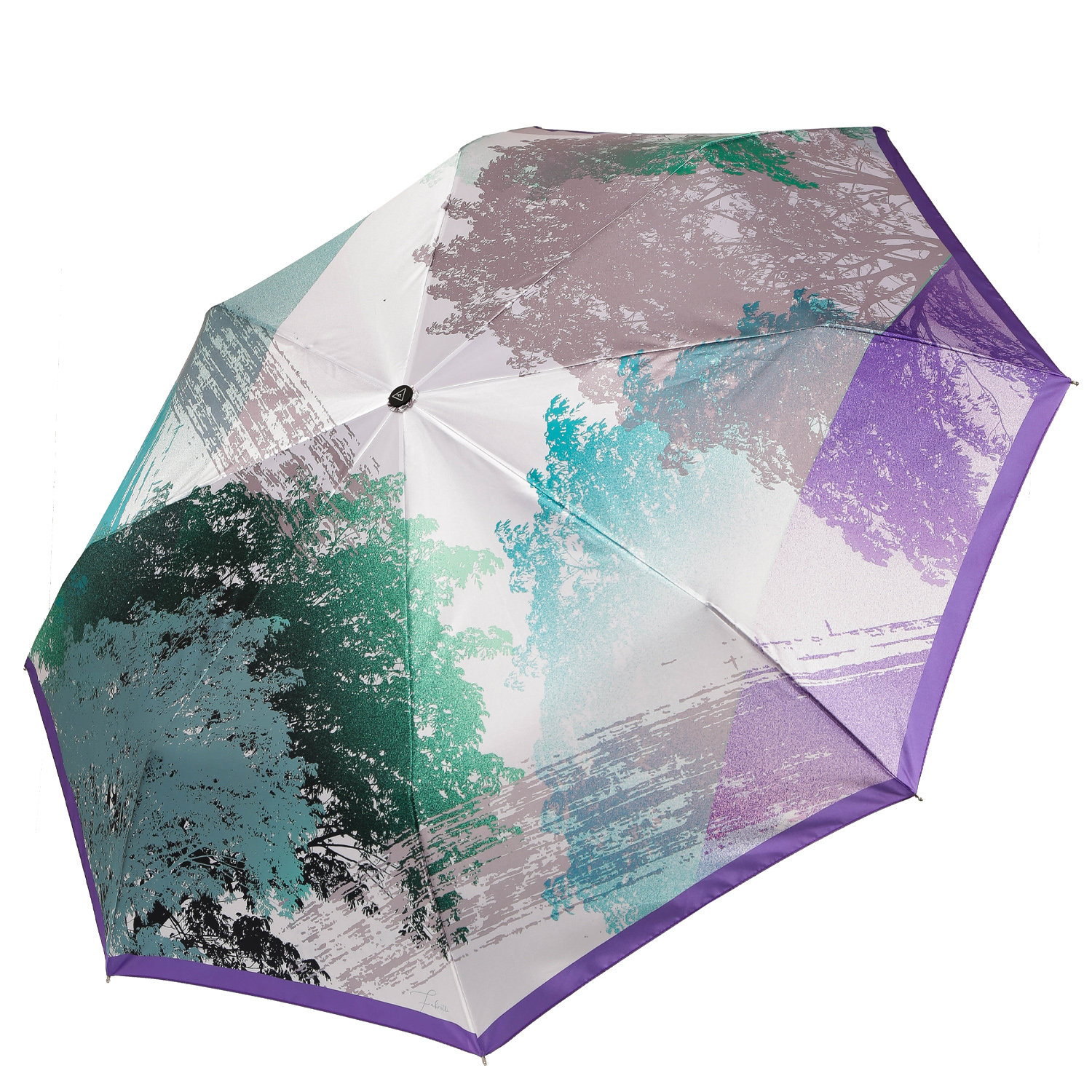 Купол зонта-автомата FABRETTI украшен оригинальным дизайнерским принтом. Рисунок нанесен с помощью техники цифровой печати, которая обеспечивает долговечность изображению и точность цветопередачи. Купол выполнен из полиэстера с приятной гладкой фактурой и сатиновым блеском. Вода, попадая на такой купол, превращается в капли и легко скатываться вниз.