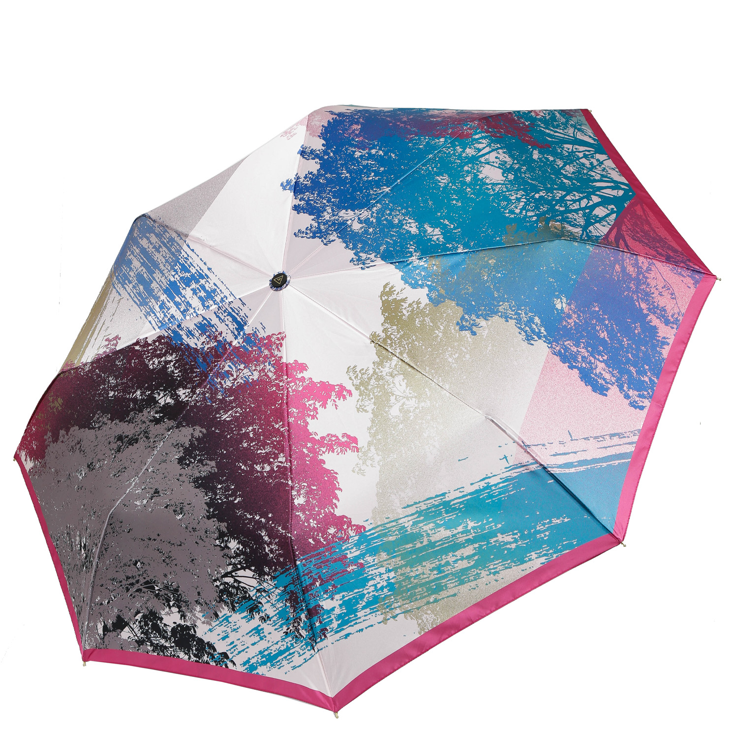 Купол зонта-автомата FABRETTI украшен оригинальным дизайнерским принтом. Рисунок нанесен с помощью техники цифровой печати, которая обеспечивает долговечность изображению и точность цветопередачи. Купол выполнен из полиэстера с приятной гладкой фактурой и сатиновым блеском. Вода, попадая на такой купол, превращается в капли и легко скатываться вниз.