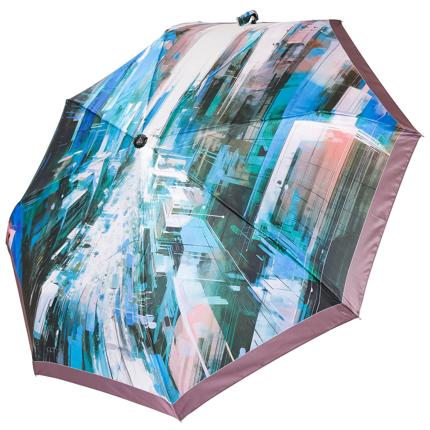 Купол зонта-автомата FABRETTI декорирован абстрактным принтом с бирюзовыми цветовыми акцентами. Рисунок нанесен с помощью техники цифровой печати, которая обеспечивает долговечность изображению и точность цветопередачи. Купол выполнен из полиэстера с приятной гладкой фактурой и сатиновым блеском. Вода, попадая на такой купол, превращается в капли и легко скатываться вниз.