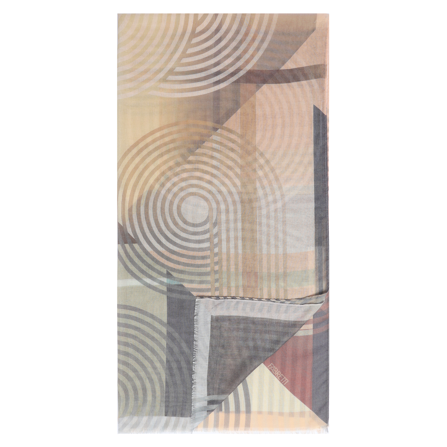 Легкий женский шарф итальянского бренда FABRETTI со сложным геометрическим узором и интересными переходами оттенков коричневого и бежевого.