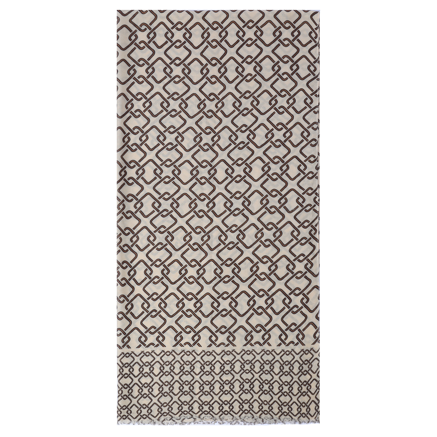 Легкий женский шарф итальянского бренда FABRETTI с четким геометрическим узором из переплетения ромбов в бежево-коричневой гамме.