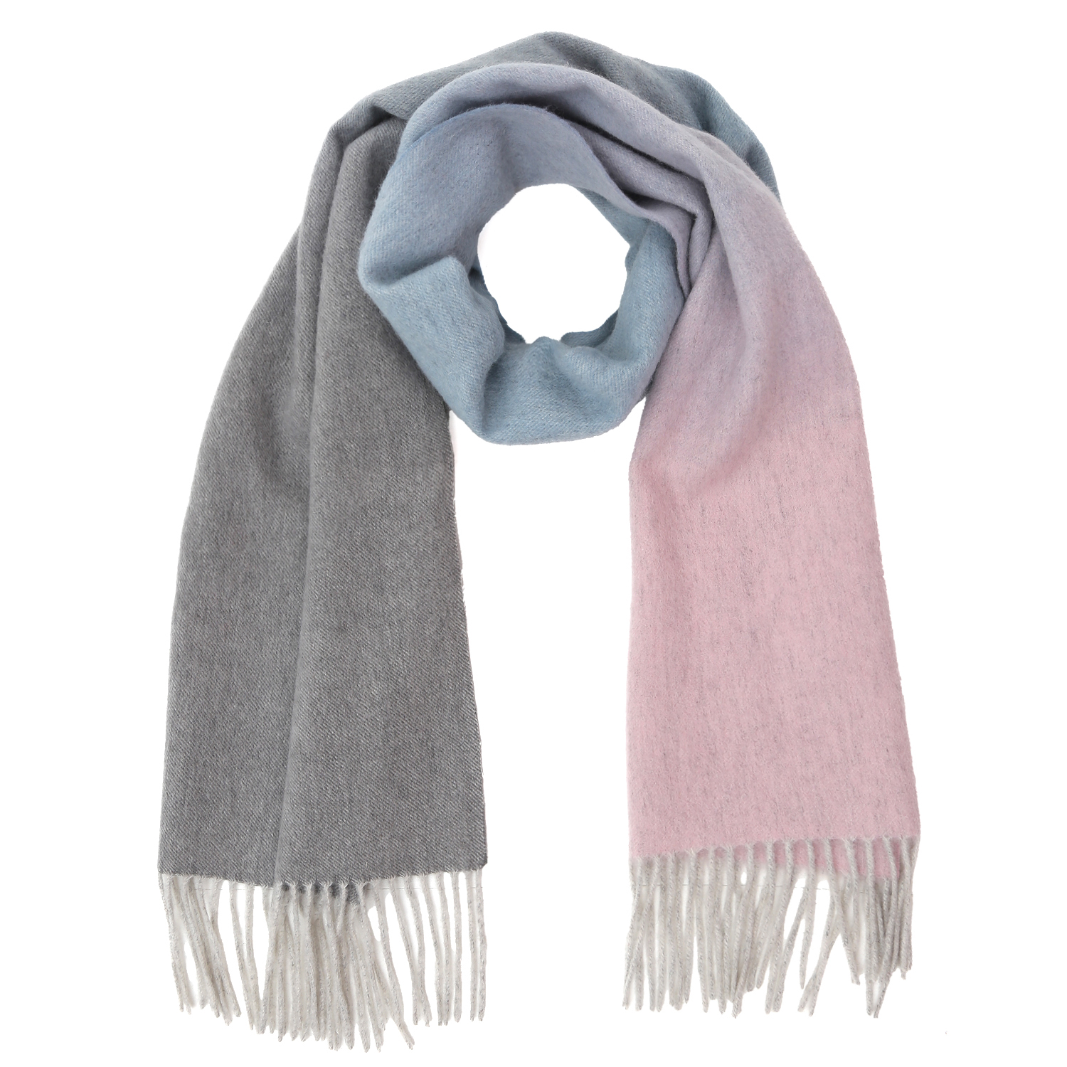Уютный женский шарф итальянского бренда FABRETTI из натуральной шерсти с розово-серым градиентом.