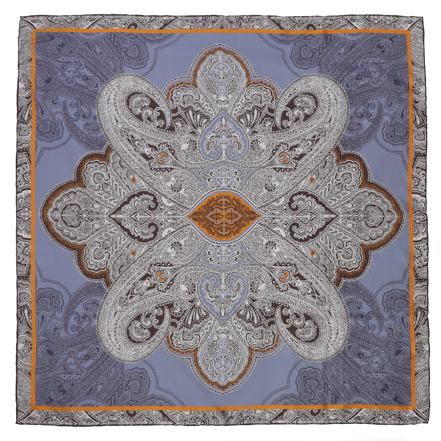 Роскошный женский платок итальянского бренда FABRETTI из натурального шелка, украшенный «восточным» узором с пейсли и растительными орнаментами в голубых тонах с оранжевыми деталями. Этот классический узор не теряет актуальности многие годы, он прекрасно сочетается одеждой в различных стилях – от офисной классики до романтичного бохо. У платка ручная подшивка краев.