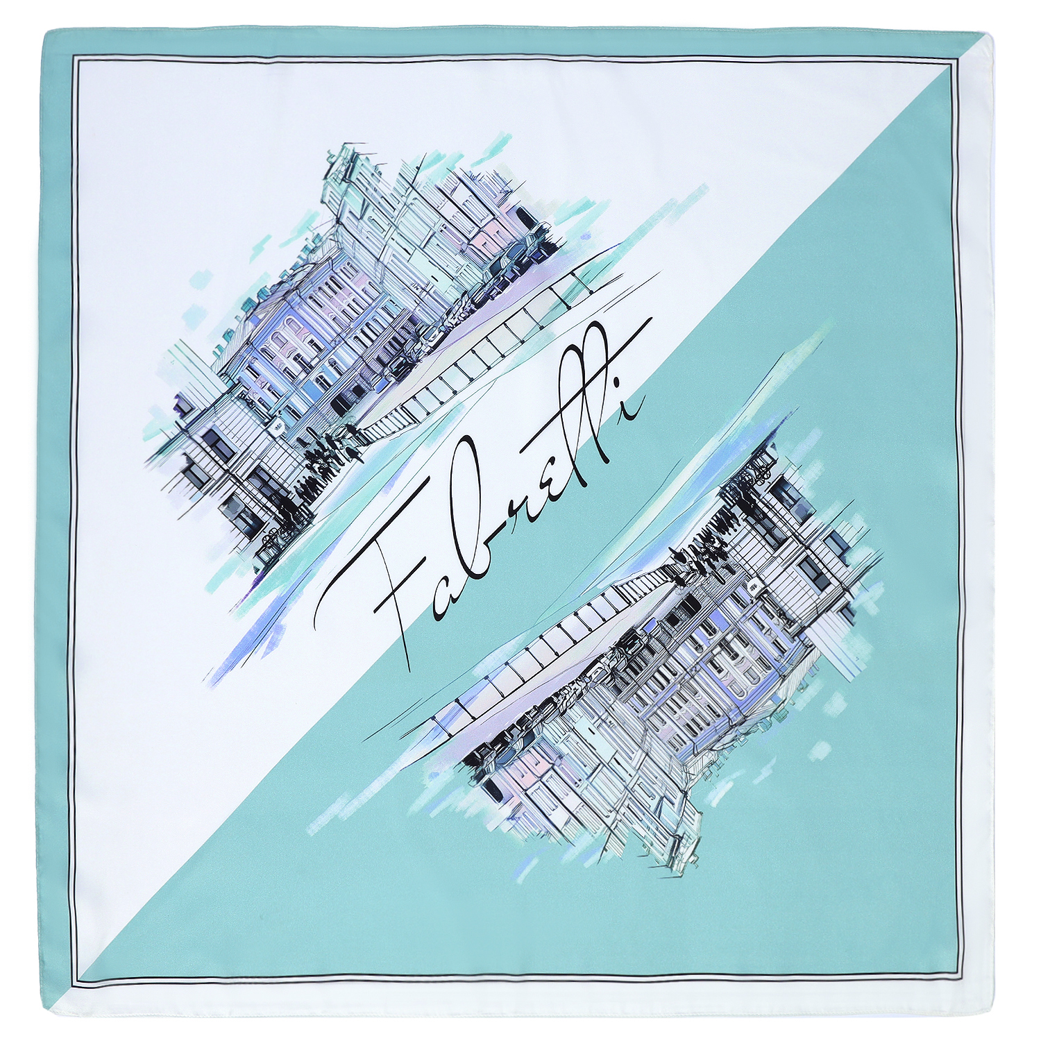 Стильный женский платок итальянского бренда FABRETTI из искусственного шелка в голубых тонах с современным городским пейзажем смотрится легко и необычно. Эта модель сделает образ более мягким, а сложные детали рисунка позволят создать нужный акцент.