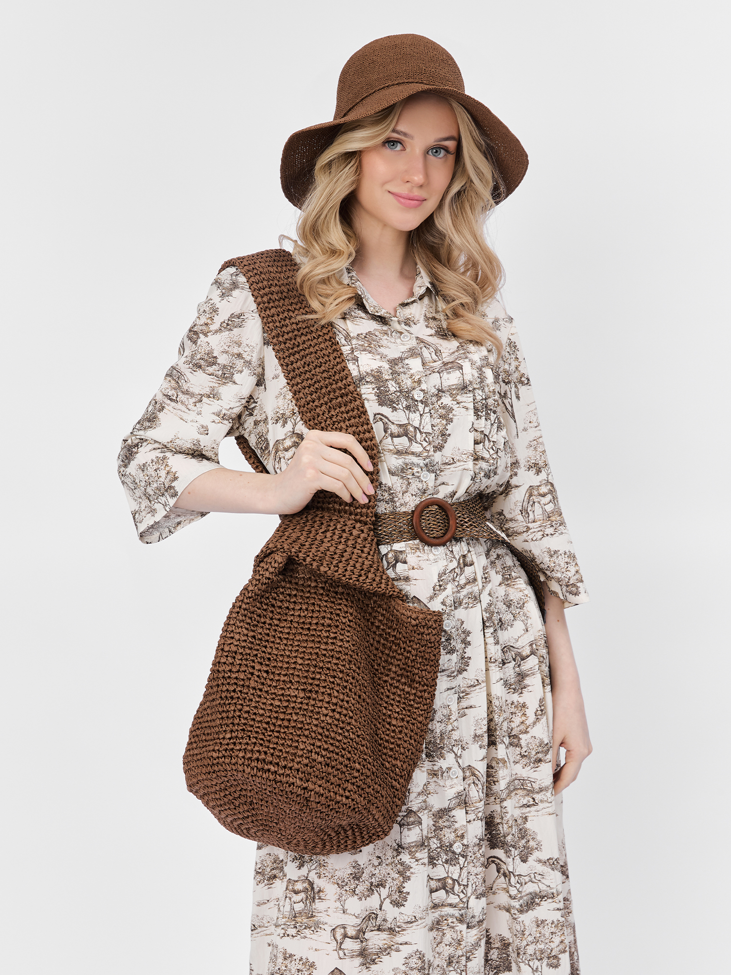 Модель выполнена из целлюлозы – прочного современного материала природного происхождения, который смотрится стильно и естественно. Крупное плетение соломки и необычный дизайн акцентируют на себе внимание, делая образ стильным и современным.