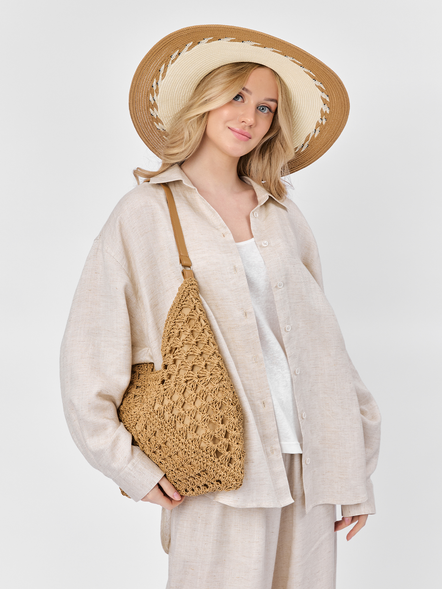 Плетеная женская сумка итальянского бренда FABRETTI с ажурным узором в темно-бежевом цвете. Это выразительный аксессуар, украшенный сложным плетеным узором в стиле макраме, отвечает тренду на ретро. Он будет отлично смотреться и с пляжным гардеробом, и дополнит повседневный городской образ. Сумка оснащена текстильной подкладкой. Внутри одно отделение, закрывающееся на магнит и небольшой открытый карман. Ручка из экокожи подходит для ношения на плече.