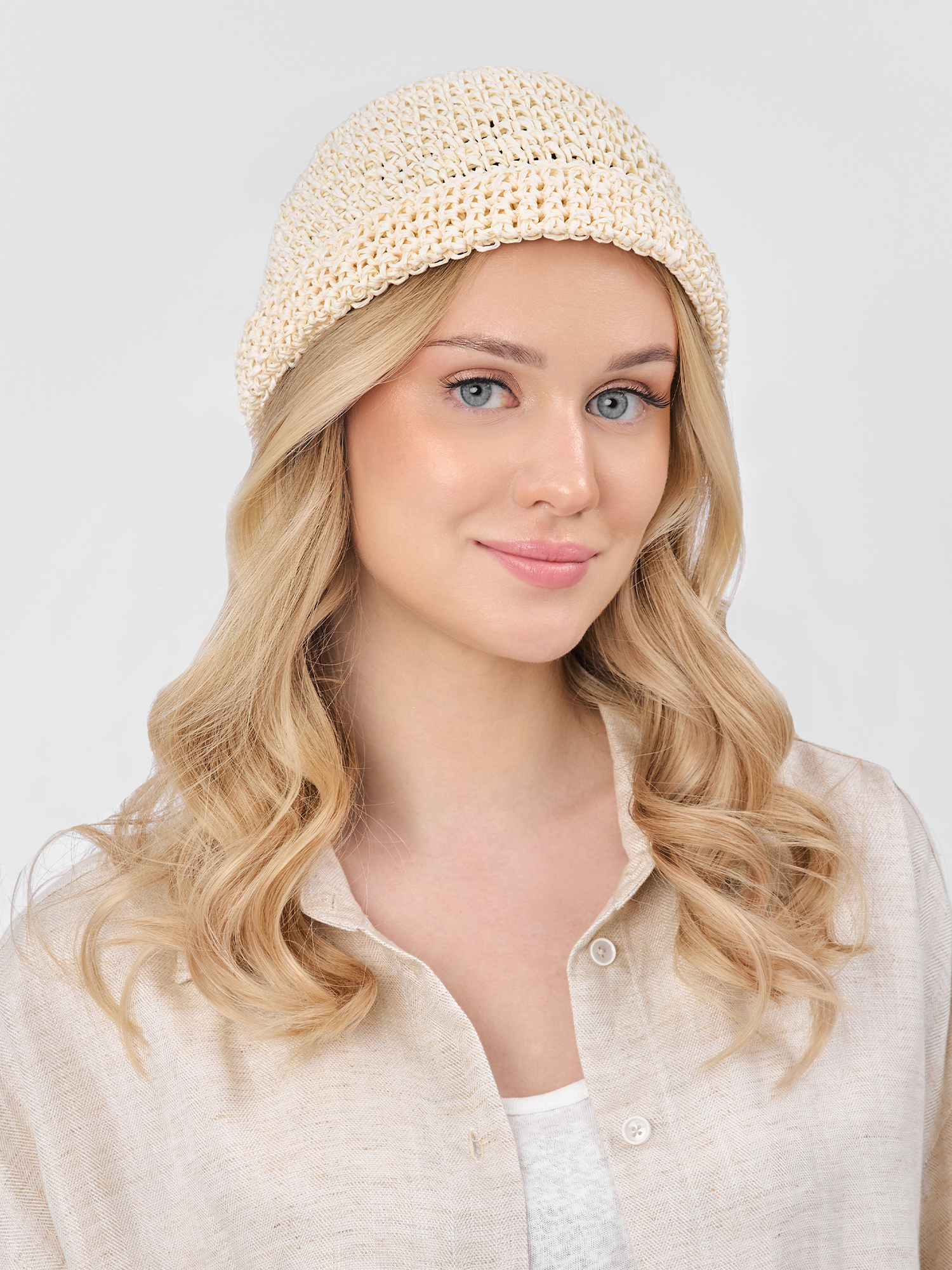 Необычная женская панама итальянского бренда FABRETTI, выполненная в ретро-технике «кроше» в теплом молочном оттенке. Особенность этой модели – короткие поля, которые могут быть подвернуты наверх – шляпку можно носить разными способами и сочетать с разным гардеробом. Внутри объем регулируется лентой.
