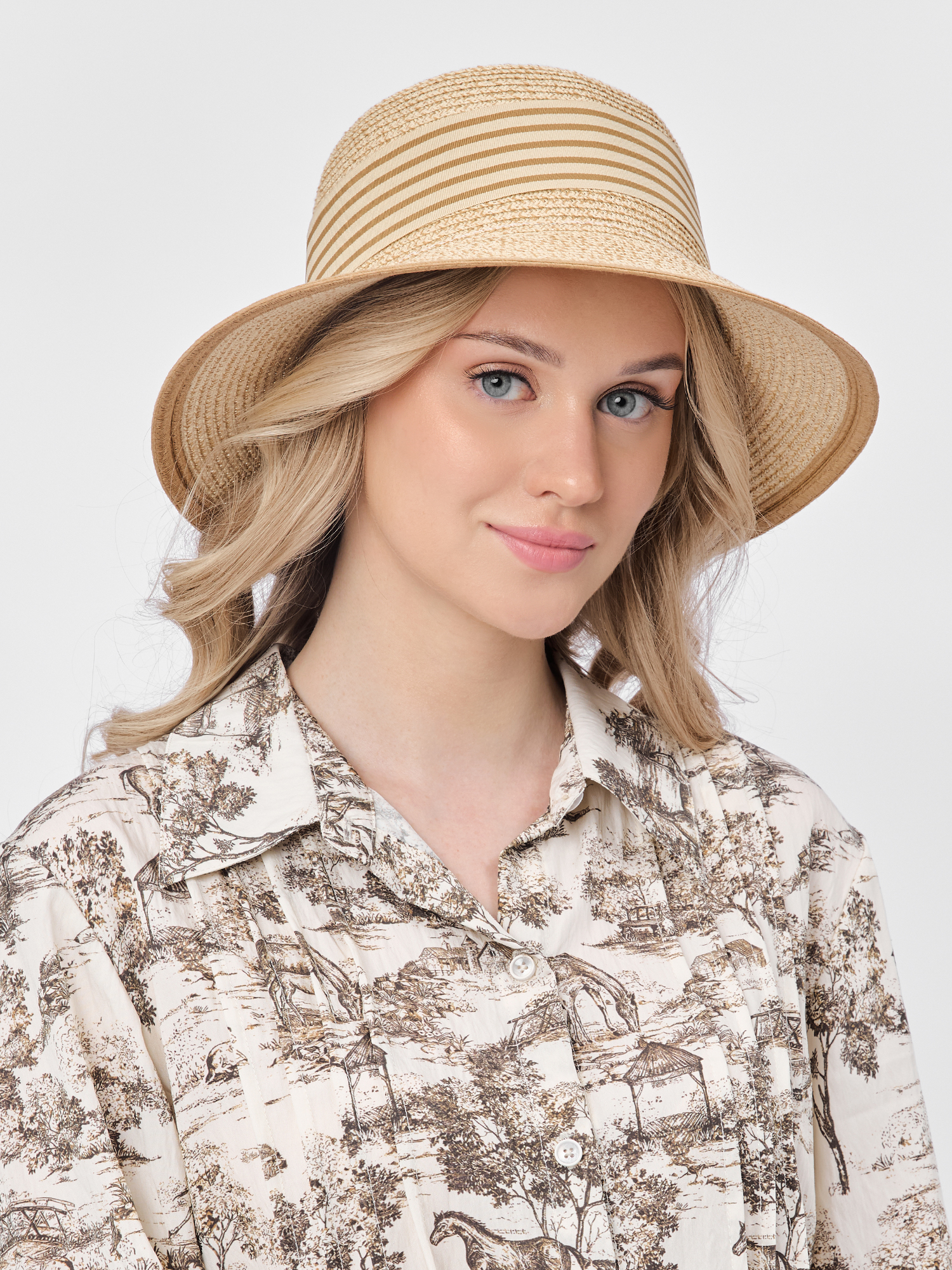 Милая женская шляпка итальянского бренда FABRETTI светло-бежевого цвета – то, что надо для жаркого летнего сезона.