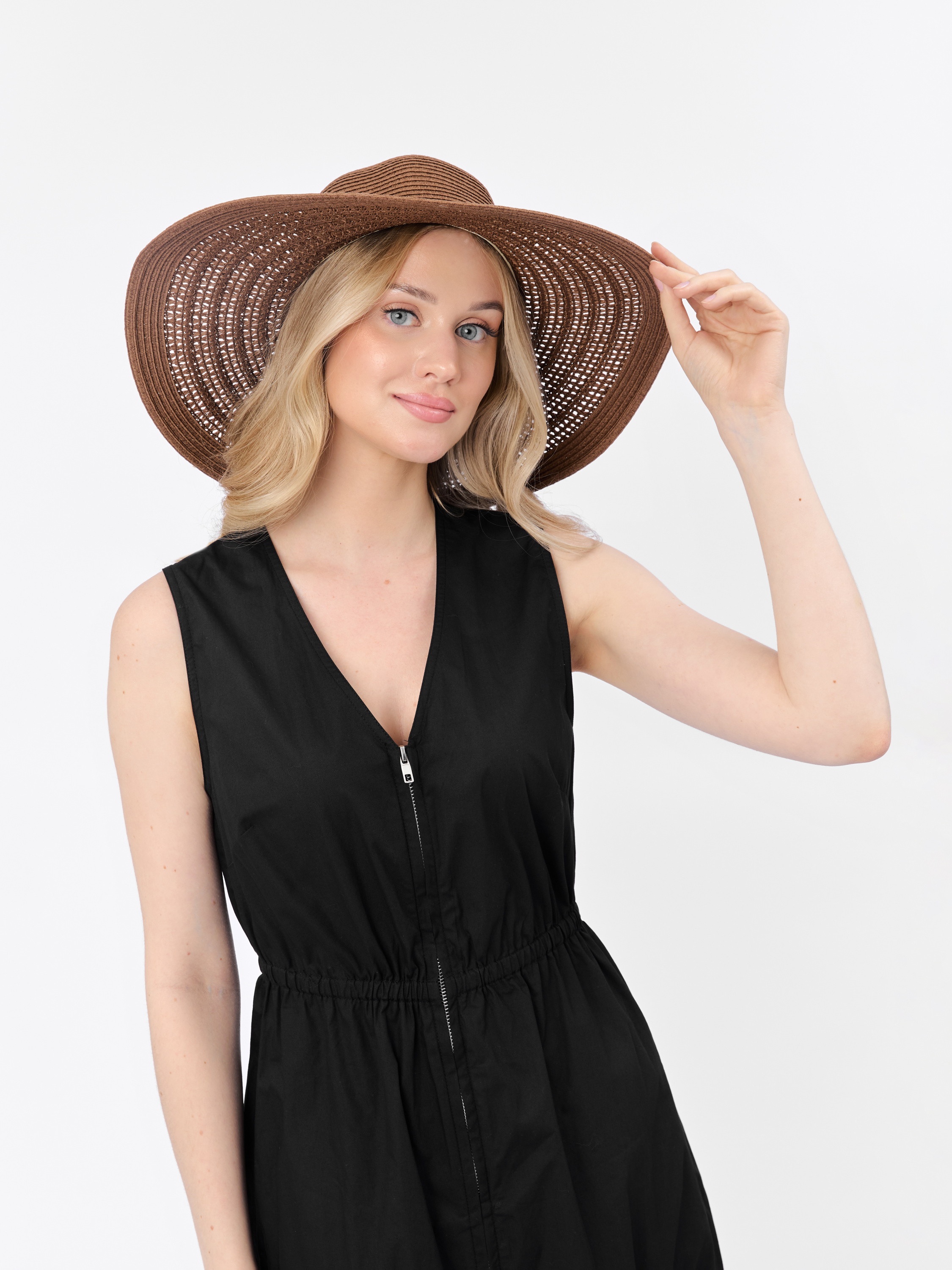 Легкая летняя широкополая женская шляпа итальянского бренда FABRETTI в коричневом цвете.