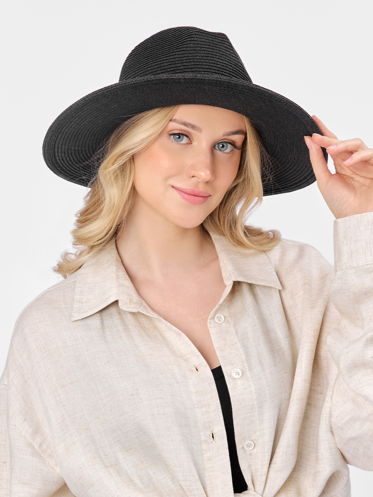 Широкие поля этой шляпы отлично защищают от солнца, а легкий «плетеный» материал хорошо пропускает воздух, не давая перегреться на жаре.