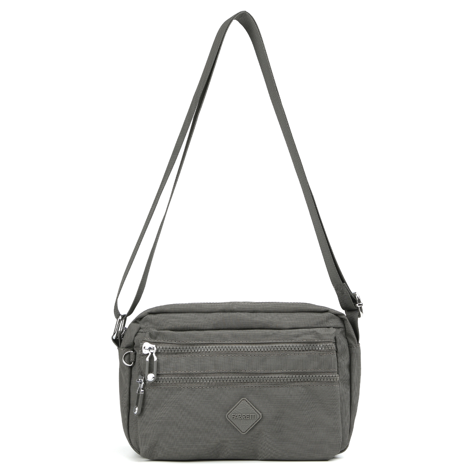 Текстильная сумка итальянского бренда FABRETTI в сером цвете выполнена из высокотехнологичного влагостойкого полиэстера. Сумка имеет два отделения, которые закрываются на молнию. Внутри одного - два открытых кармана и карман на молнии.