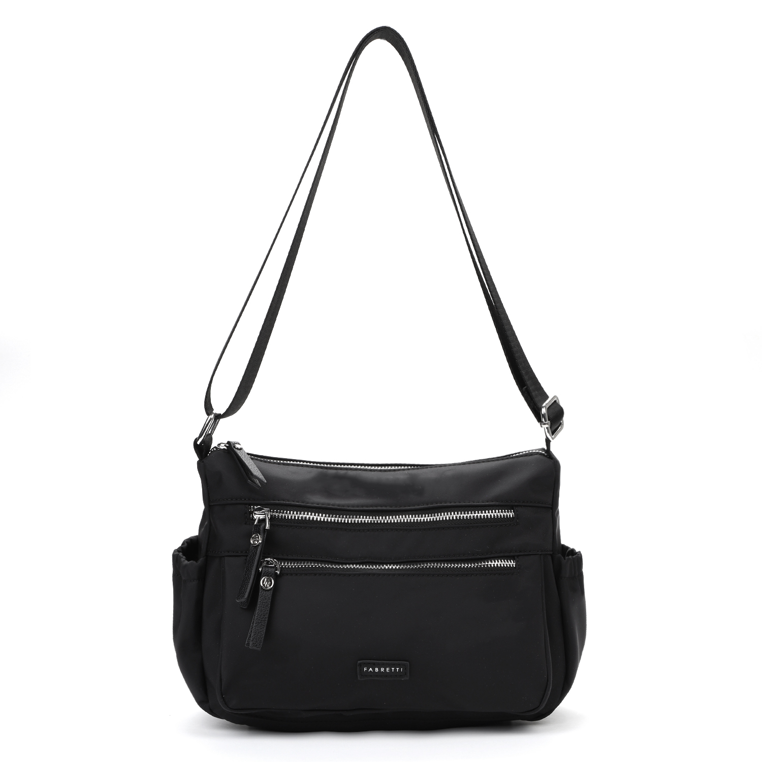 Женская сумка кросс-боди из коллекции итальянского бренда FABRETTI в классическом черном цвете с продуманным функциональным дизайном.