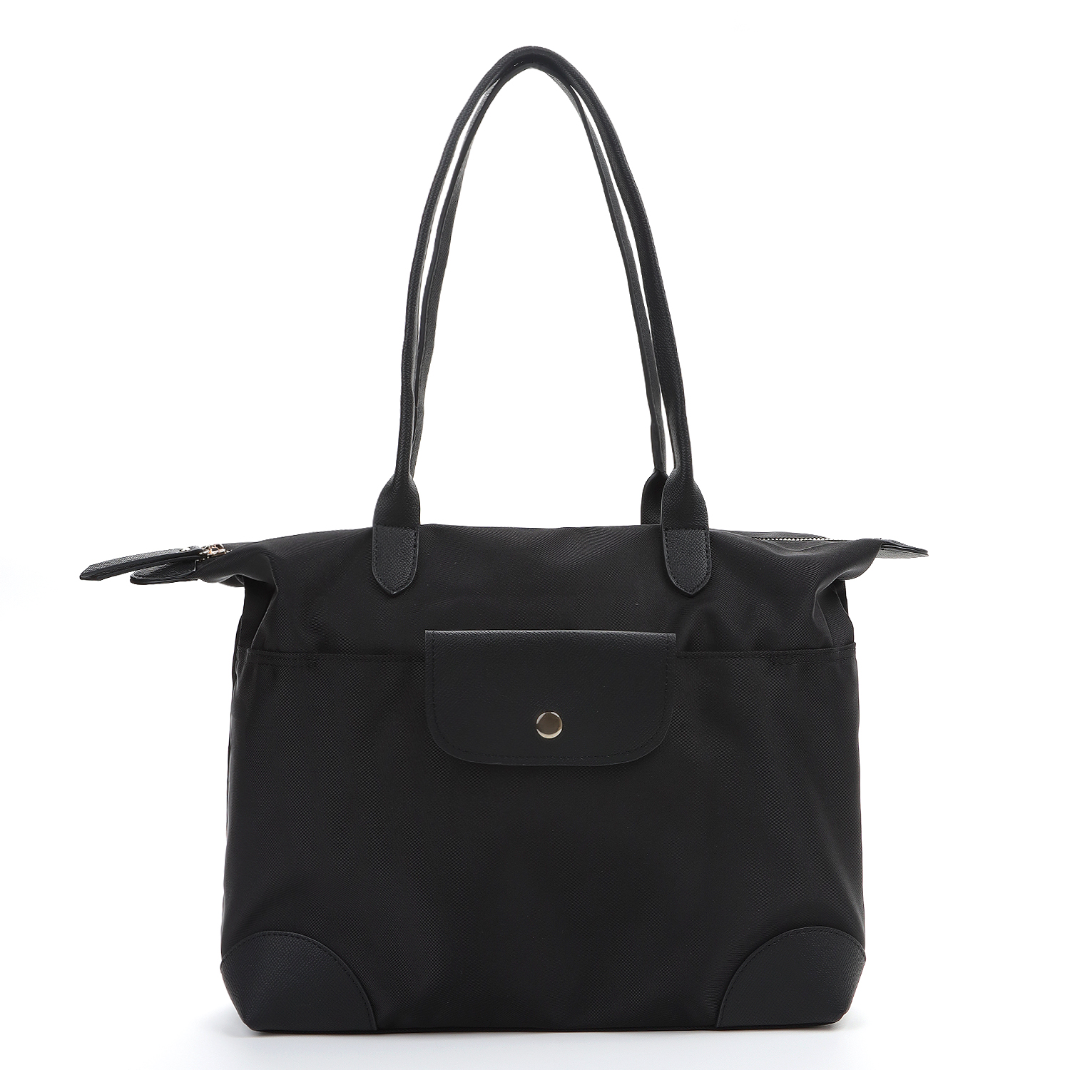 Основное отделение закрывается на металлическую молнию. У сумки одно основное отделение, разделенное надвое большим карманом на молнии. Небольшой внутренний карман застегивается на молнию. На лицевой части расположен большой открытый карман с клапаном на магните. На тыльной стороне карман быстрого доступа на молнии. Сумка дополнена длинными ручками из экокожи для ношения на плече или сгибе локтя.