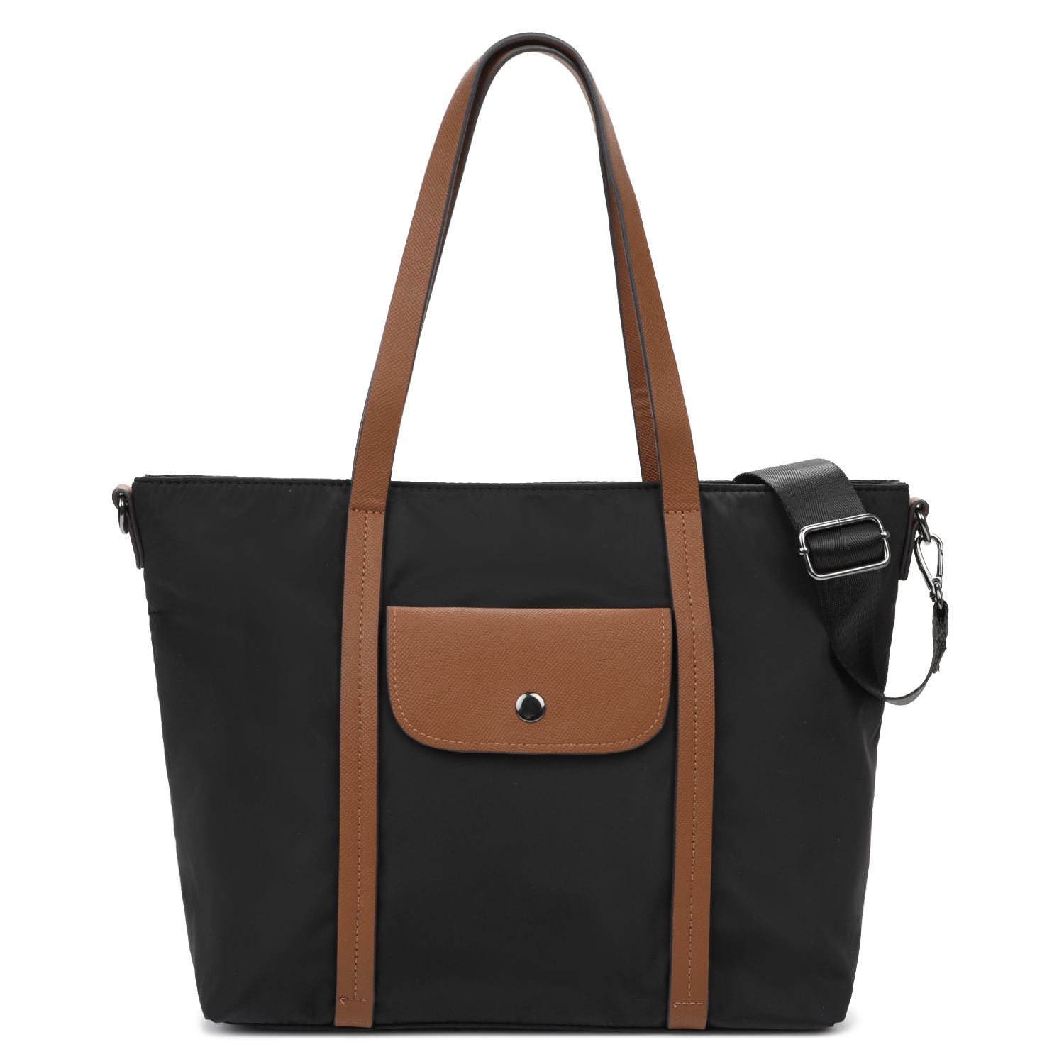 Лаконичная и стильная женская сумка-тоут из коллекции итальянского бренда FABRETTI, выполненная в черном цвете. Эксклюзивная плотная гладкая ткань с деликатным блеском имеет водоотталкивающие свойства.