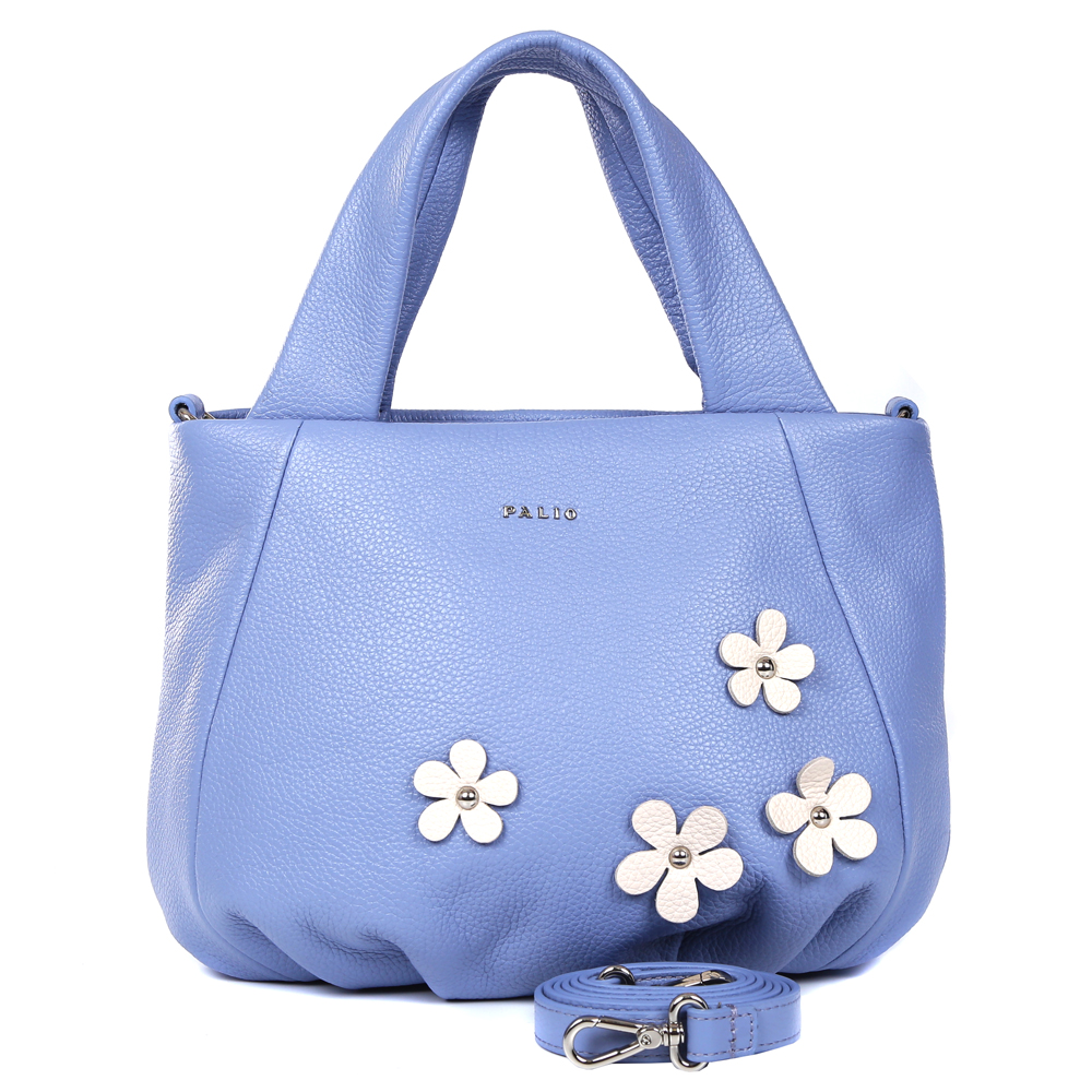 Женская сумка-тоут Palio, выполненная из натуральной пористой и мягкой кожи, это уникальная модель, с которой любой наряд будет смотреться женственно и великолепно! Изящный голубой оттенок и невероятно модная цветочная аппликация — все это создает модель, которую неоходимо иметь всем любительницам романтических образов. Аксессуар будет отличным дополнением на вечеринке, встрече с подругами или шопинге. Сумка имеет одно вместительное отделение, которое закрывается на прочную молнию с кожаным поводком. Внутри сумки вы с легкостью сможете расположить свой сотовый телефон и другие женские мелочи с помощью удобных карманов. С помощью длинного регулирующегося ремня сумку удобно носить на плече, дополните образ легким шарфом из нашей коллекции и отправляйтесь получать комплименты!