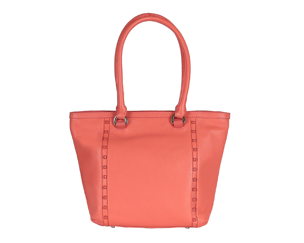 Женская сумка Palio из натуральной кожи. Внутри: одно отделение, на боковых стенках расположены два кармана для мелочей и карман на молнии. Сумка закрывается на металлическую молнию. Кожа мягкая, форма сумки изменяется соответственно наполнению. Аксессуар декорирован заклепками в виде шипов, фурнитура – серебро. Размеры меньше формата А4. Сумка носится на сгибе руки или на плече. На дне сумки расположены металлические ножки, защищающие её от механических повреждений.