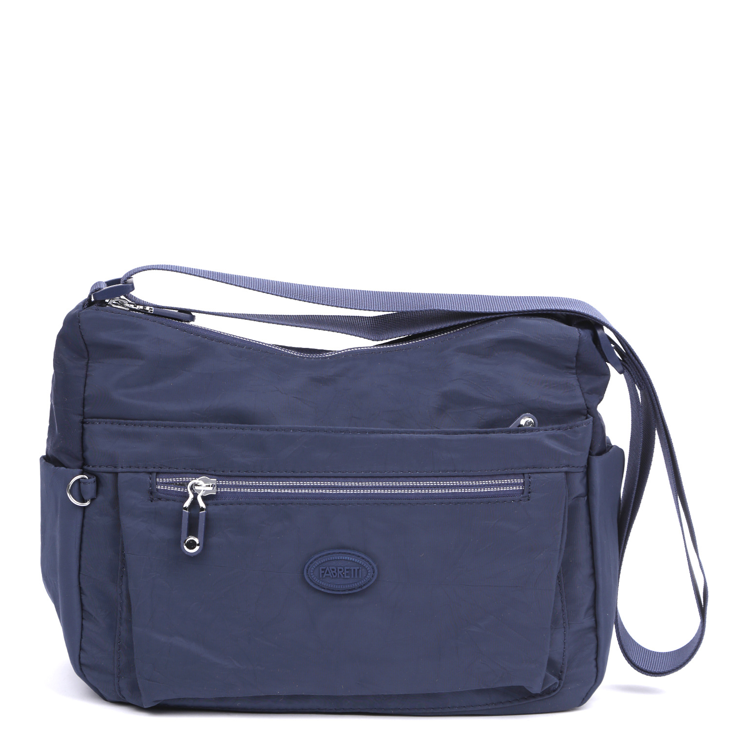 Текстильная сумка FABRETTI в синем оттенке выполнена из высокотехнологичного влагостойкого полиэстера жатой фактуры. Он практичен и прост в уходе. Модель имеет 2 отделения, каждое из которых закрывается на влагозащитную молнию с удобным поводком. Внутри одного отделения есть 2 открытых боковых кармана для мелочей, внутри другого - боковой карман на молнии и карабин на шнурке, который поможет быстро найти ключи в сумке. На лицевой стороне расположены 2 вместительных кармана на молнии. На тыльной стороне предусмотрен глубокий карман быстрого доступа на влагозащитной молнии. С каждого бока - по открытому карману. Текстильный плечевой ремень регулируется по длине, ширина - 3,5 см. Сумка станет незаменимым аксессуаром в любой поездке, а также гармонично впишется в стиль casual.
