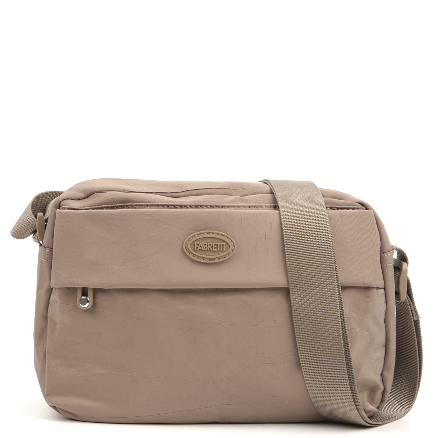 Удобная текстильная сумка FABRETTI в бежевом оттенке выполнена из высокотехнологичного влагостойкого полиэстера жатой фактуры. Он практичен и прост в уходе. Основное отделение закрывается на влагозащитную молнию с удобным поводком. Внутри есть 3 боковых кармана для мелочей: 2 открытых и на молнии. На лицевой стороне расположены 2 вместительных кармана на влагозащитной молнии. На тыльной стороне предусмотрен карман быстрого доступа на молнии. Текстильный плечевой ремень регулируется по длине. Сумка станет незаменимым аксессуаром в любой поездке, а также гармонично впишется в стиль casual.