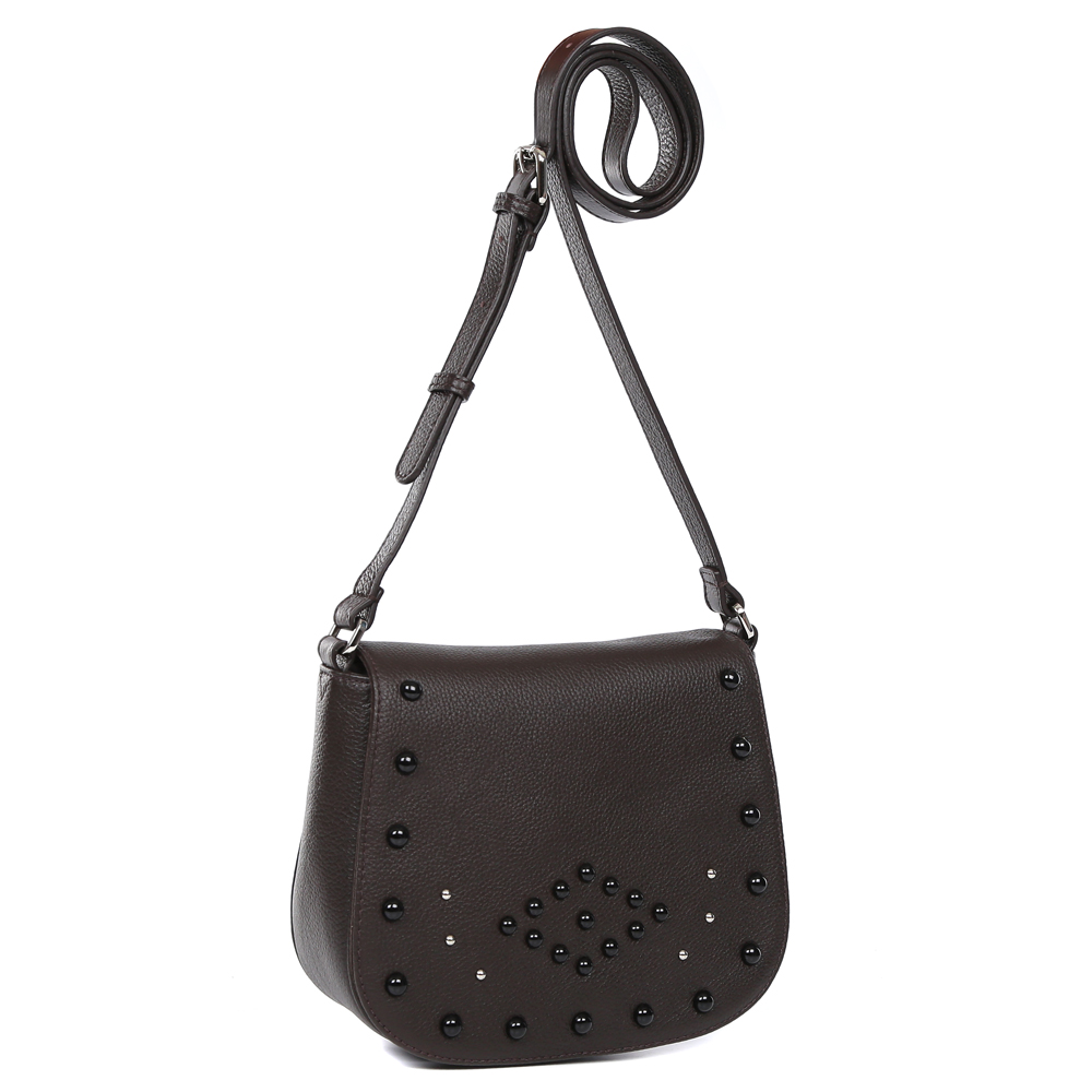 Женская сумка кросс-боди Palio, выполненная из натуральной кожи, будет прекрасно гармонировать как с деловым брючным костюмом, так и с длинным трикотажным платьем. Утонченный коричневый цвет в сочетании со стильной формой и дизайнерской россыпью хольнитенов - такой аксессуар, безусловно, подчеркнет ваш изысканный вкус и умение подбирать ультрамодные аксессуары. Сумка имеет одно вместительное отделение, которое закрывается на прочный магнитный замок. Внутри сумки Palio вы с легкостью сможете расположить свой сотовый телефон и другие женские мелочи с помощью удобного кармана на молнии. Длинна плечевого ремня регулируется. Дополните свой образ стильной шляпой и платком из нашей новой коллекции и получайте комплименты от окружающих!