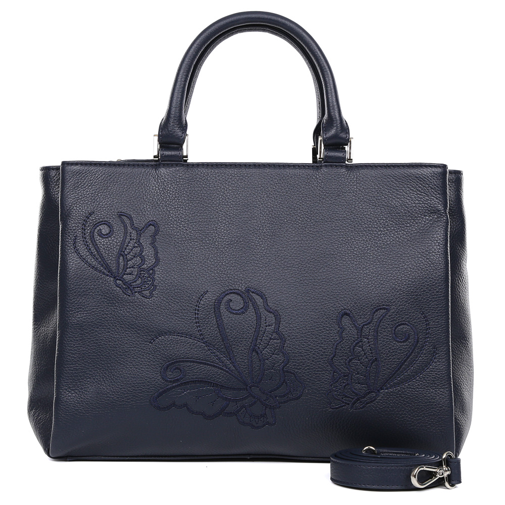 Насыщенный синий цвет, лаконичный дизайн, минимум фурнитуры– одни из главных тенденций высокой моды, которые наши дизайнеры отразили в этой модели женской сумки Palio. Гладкая пористая кожа, стильная дизайнерская строчка в виде бабочек, вместительная форма и фурнитура в серебряном оттенке - такая модель имеет все шансы, чтобы в этом сезоне стать самым незаменимым аксессуаром. Сумка понравиться как любительницам деловых костюмов, так и романтических платьев. Сумка имеет два вместительных отделения, одно из которых закрывается на молнию, а лицевое прочный магнитный замок. Внутри сумки вы с легкостью сможете расположить свой сотовый телефон и другие женские мелочи с помощью удобных карманов. Дополните свой образ шелковым платком из новой коллекции и восхищайте окружающих!